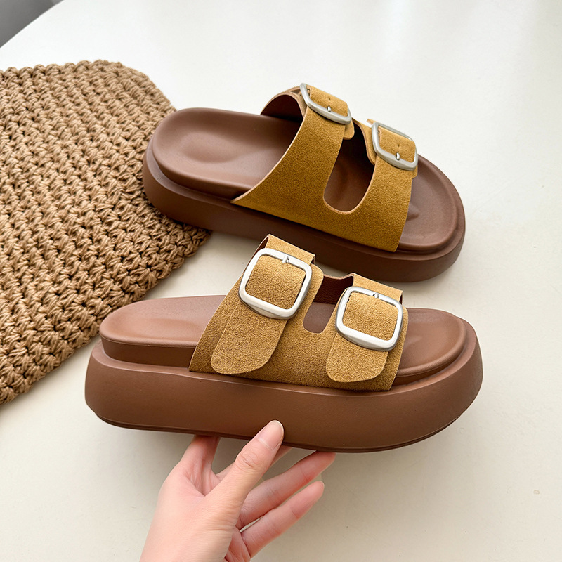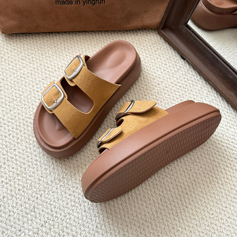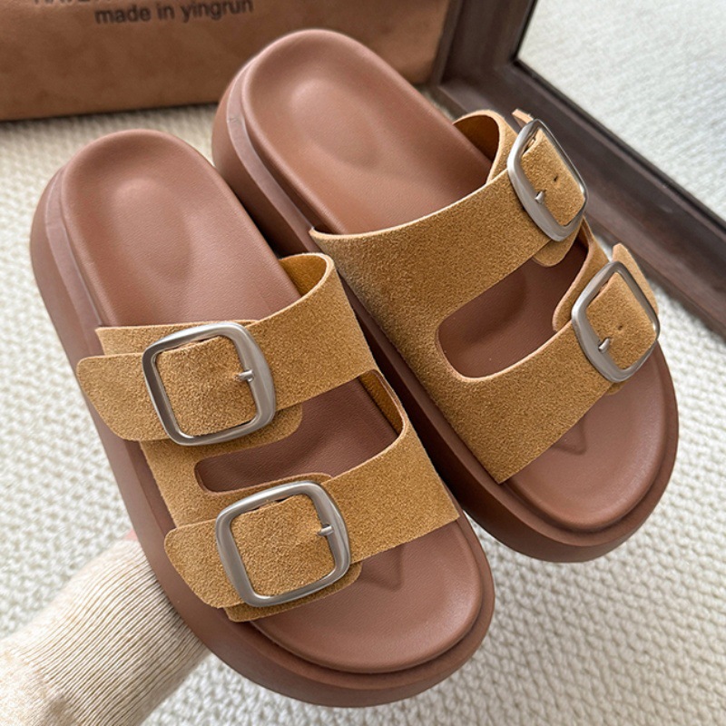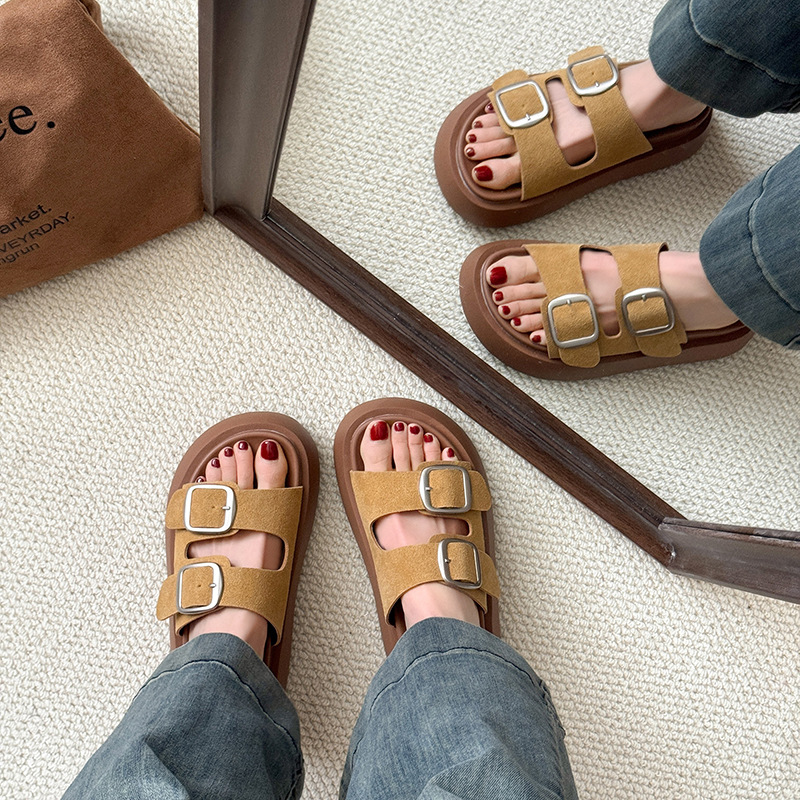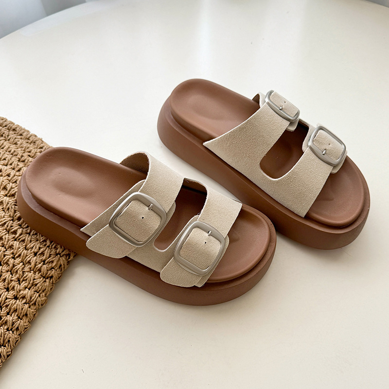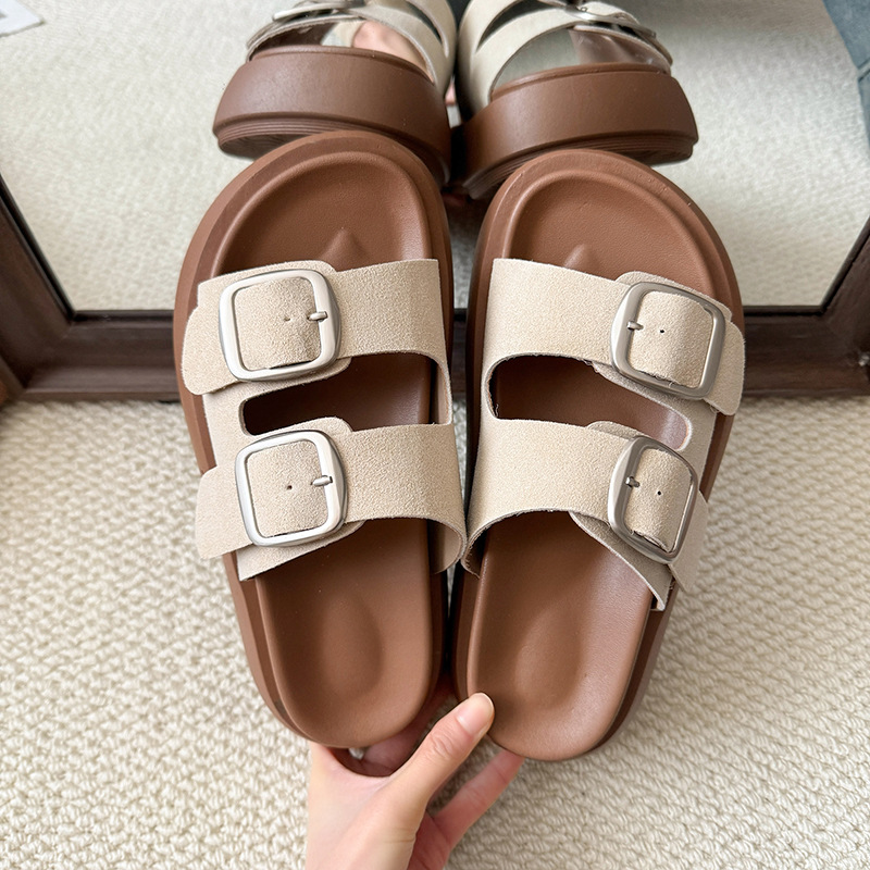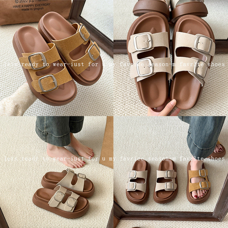 정품 가죽 버전 ~ 두꺼운 밑창 Birkenan 샌들 슬리퍼 여성의 여름 외부 착용 하이 엔드 2025 새로운 스타일 슬리퍼 치마
