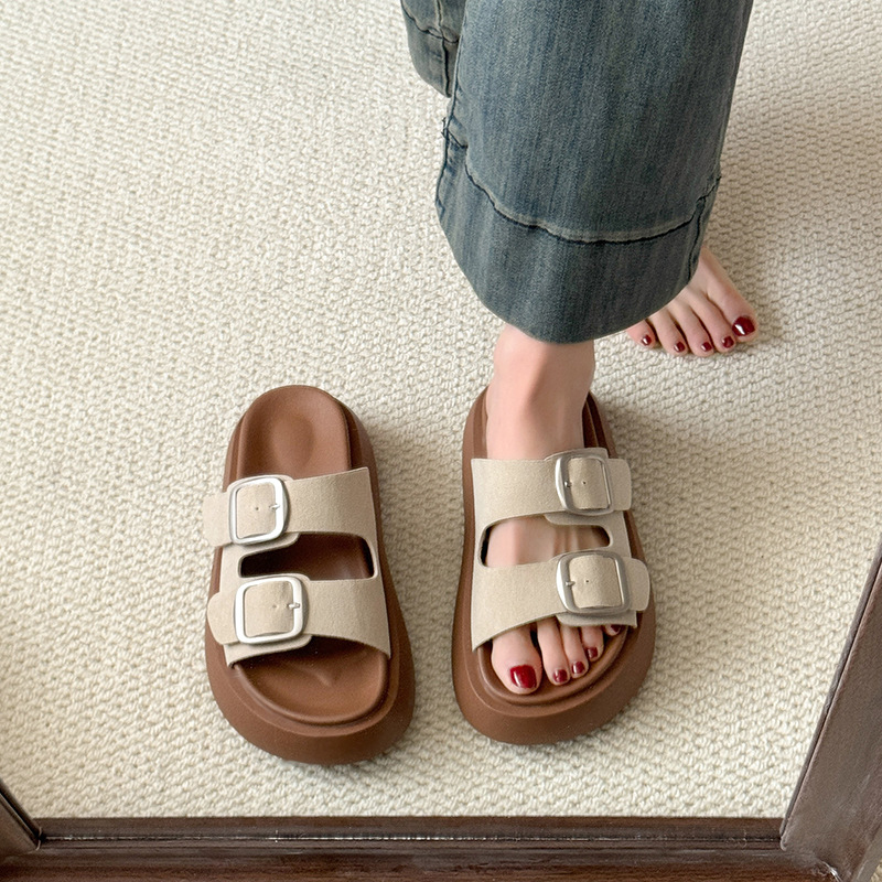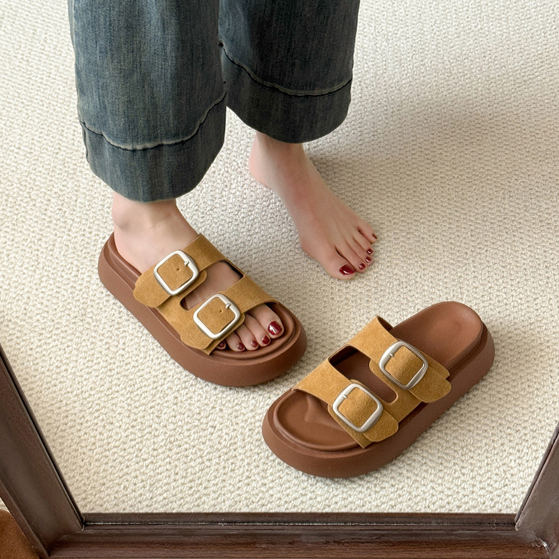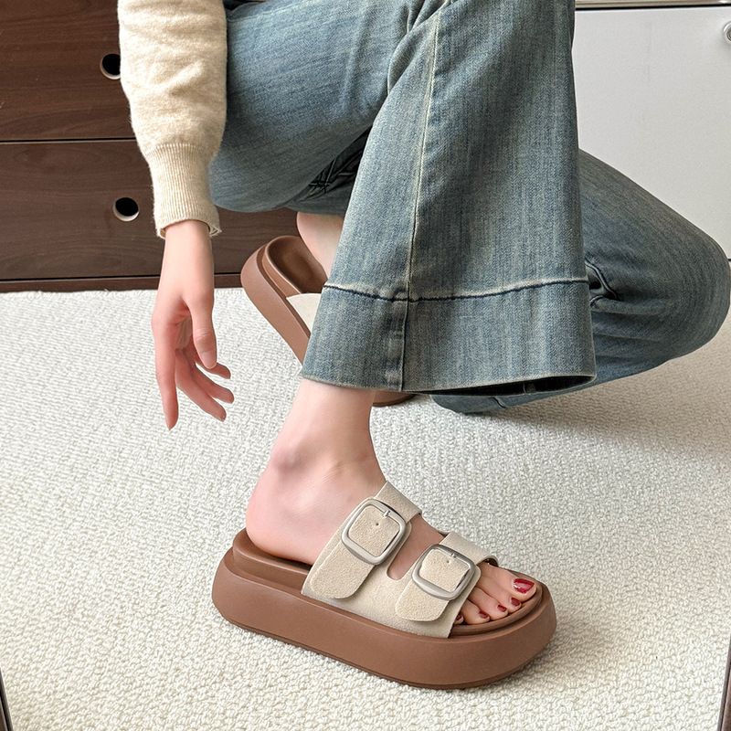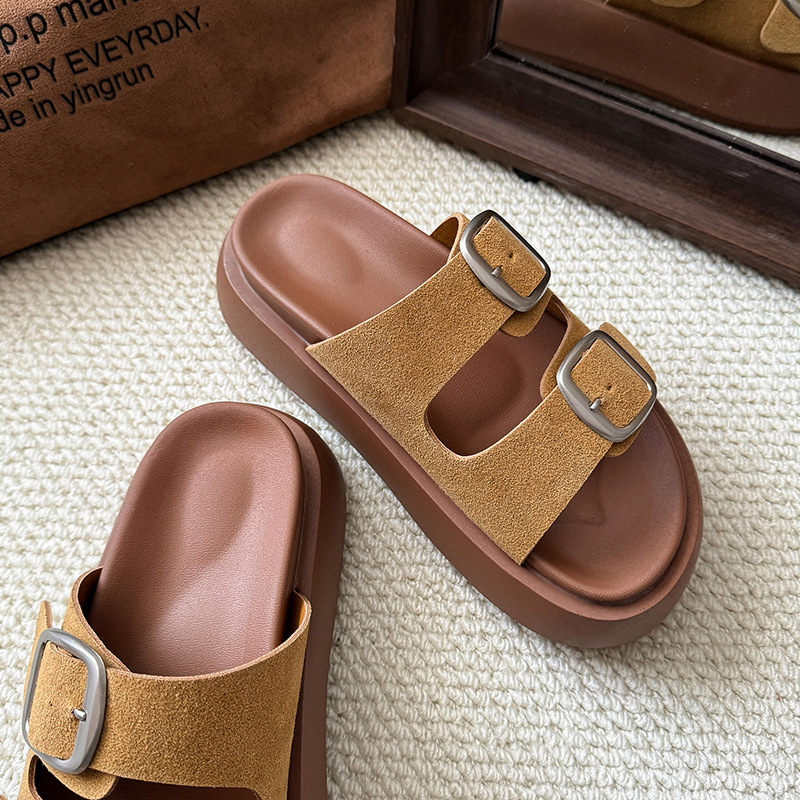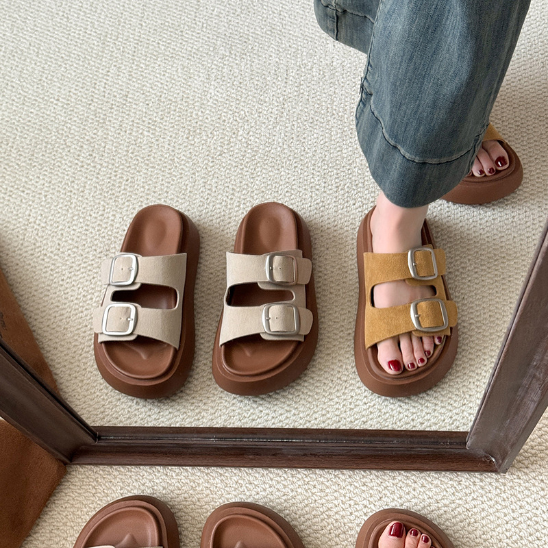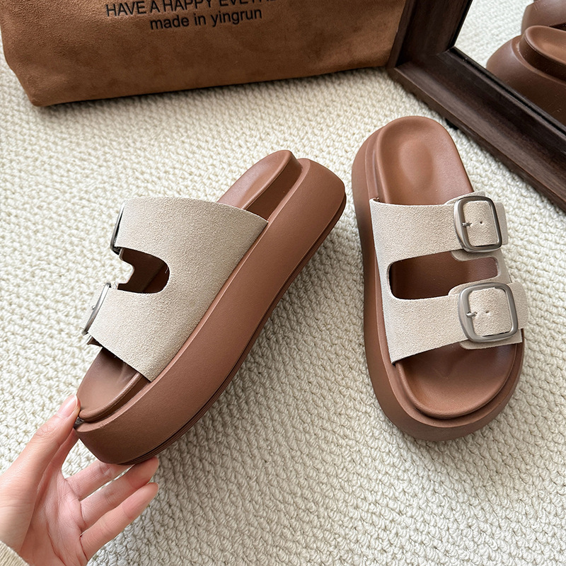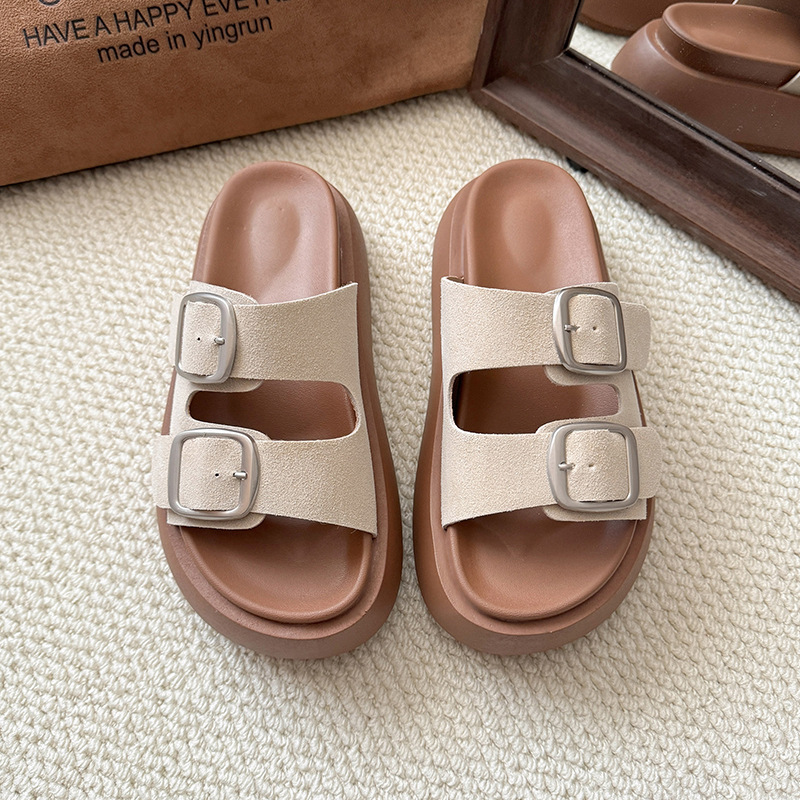 정품 가죽 버전 ~ 두꺼운 밑창 Birkenan 샌들 슬리퍼 여성의 여름 외부 착용 하이 엔드 2025 새로운 스타일 슬리퍼 치마