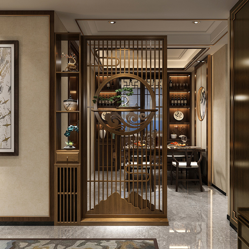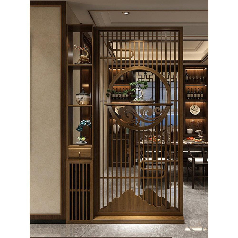 새로운 중국식 솔리드 우드 스크린 그릴 입구 캐비닛 거실 가정용 오른쪽 문 입구 문 음영 입구 파티션스토어 가기