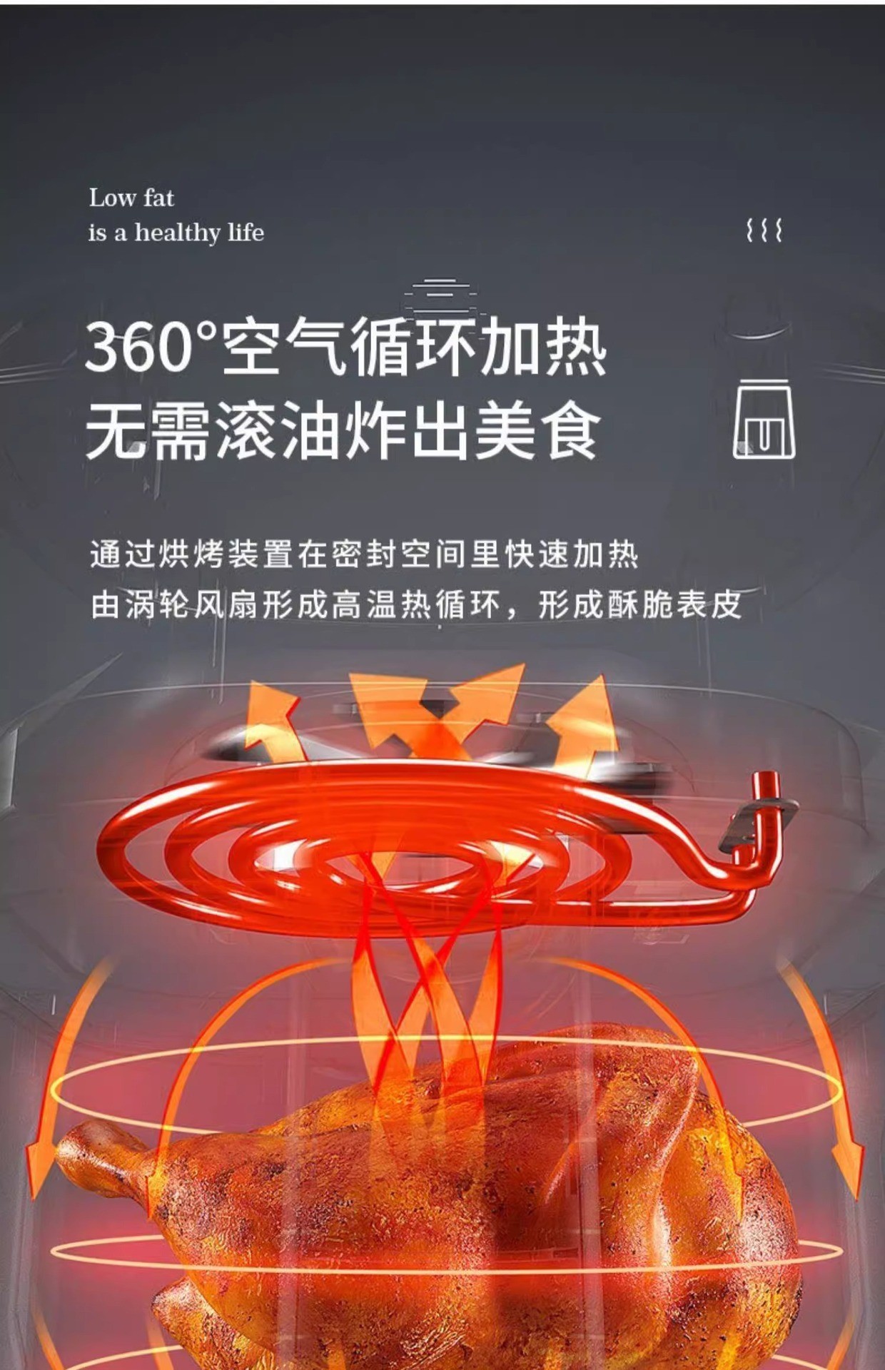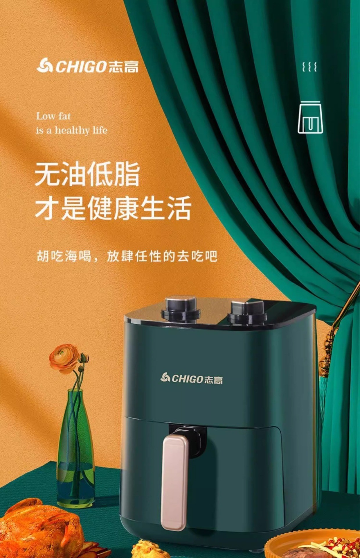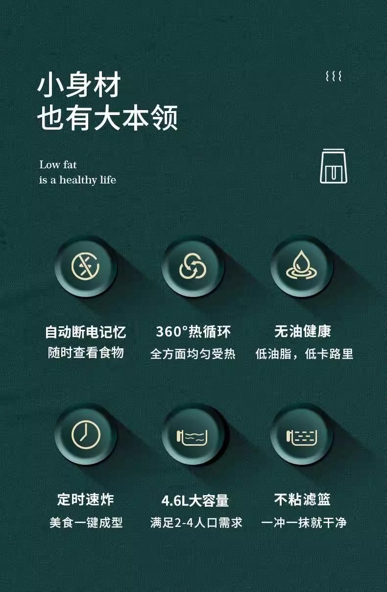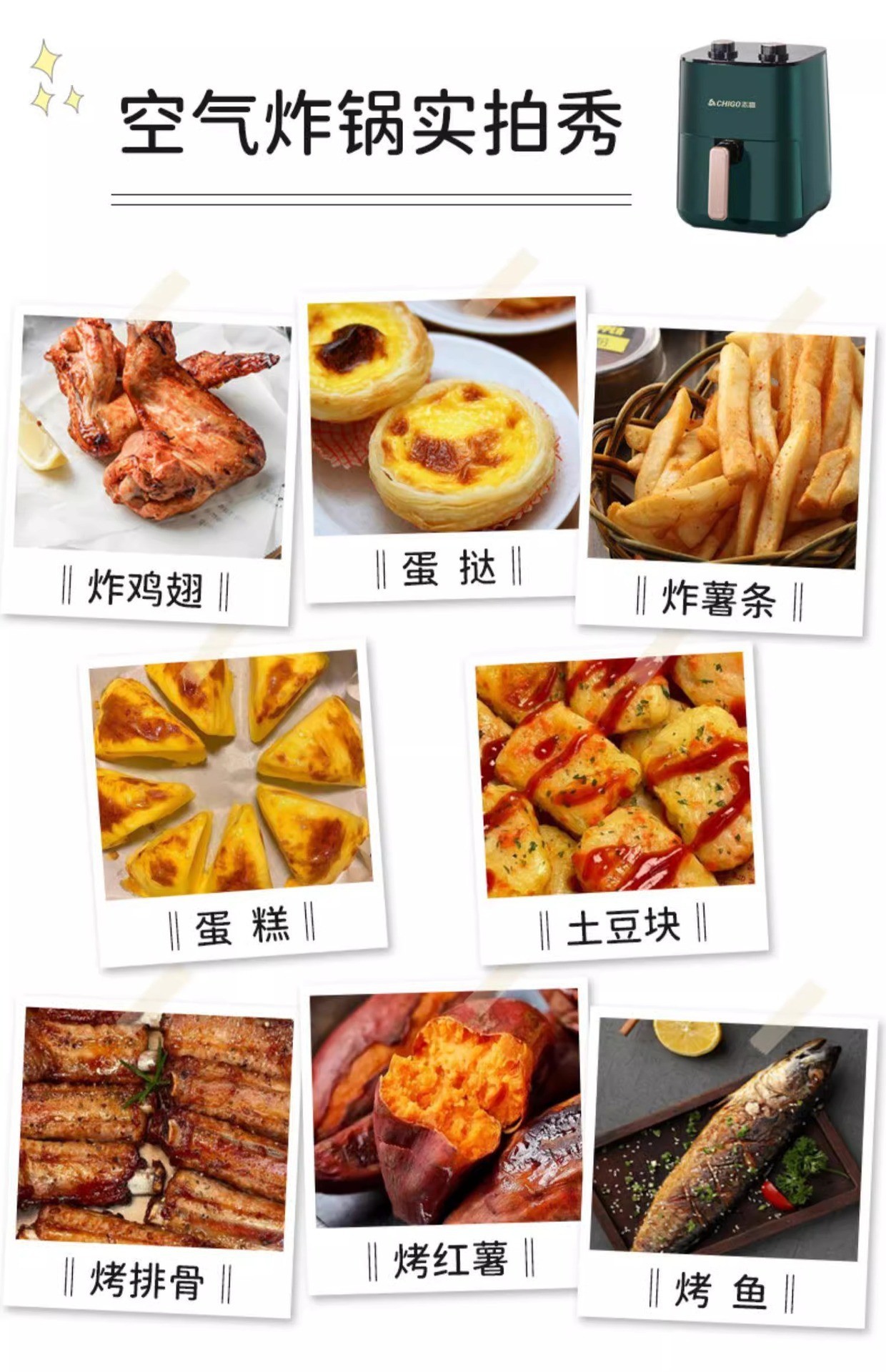Chigo 전기 오븐 대용량 지능형 다기능 자동 턴프리 비주얼 노브 5L 가정용 에어 프라이어