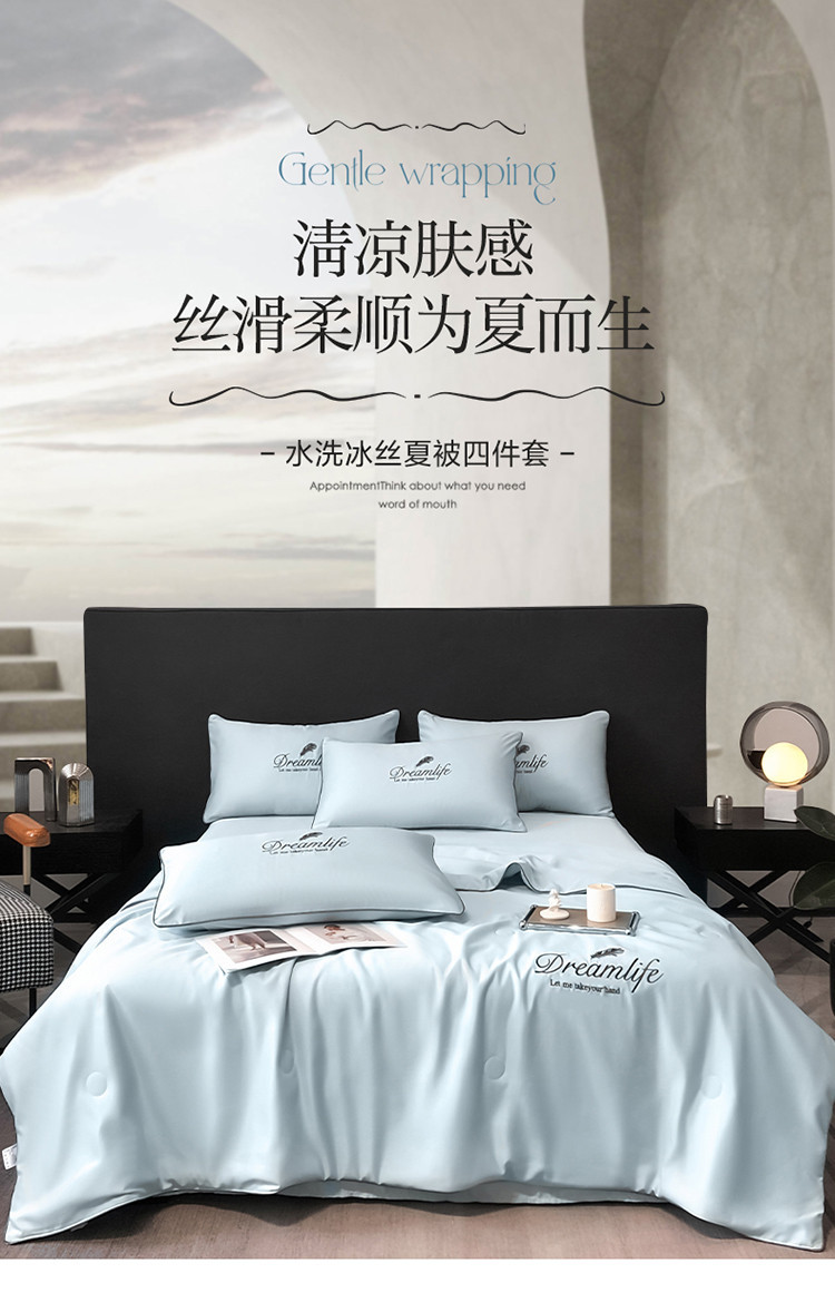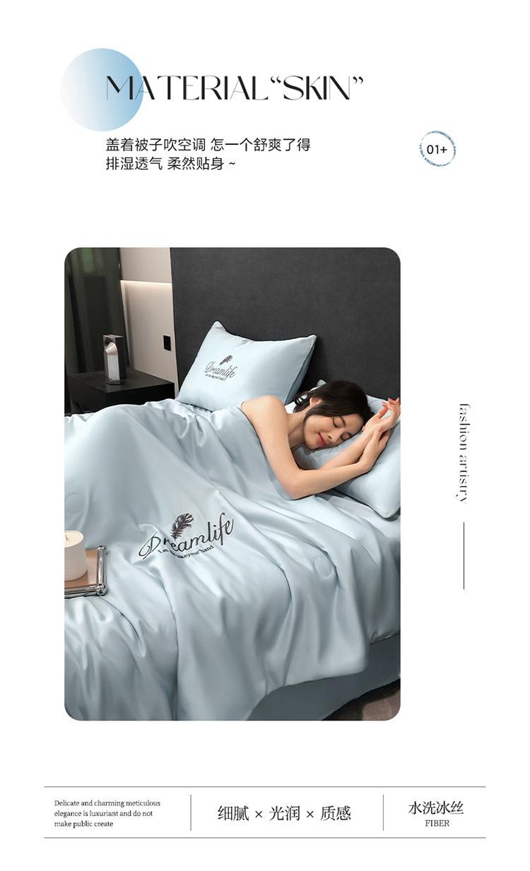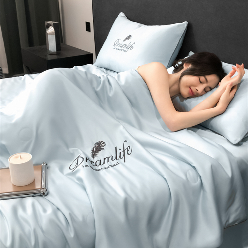 여름 워시 실크 여름 이불, 시원한 여름 이불, 얼음 실크 여름 이불, 4피스 에어컨 이불, 얇은 이불 소스 도매