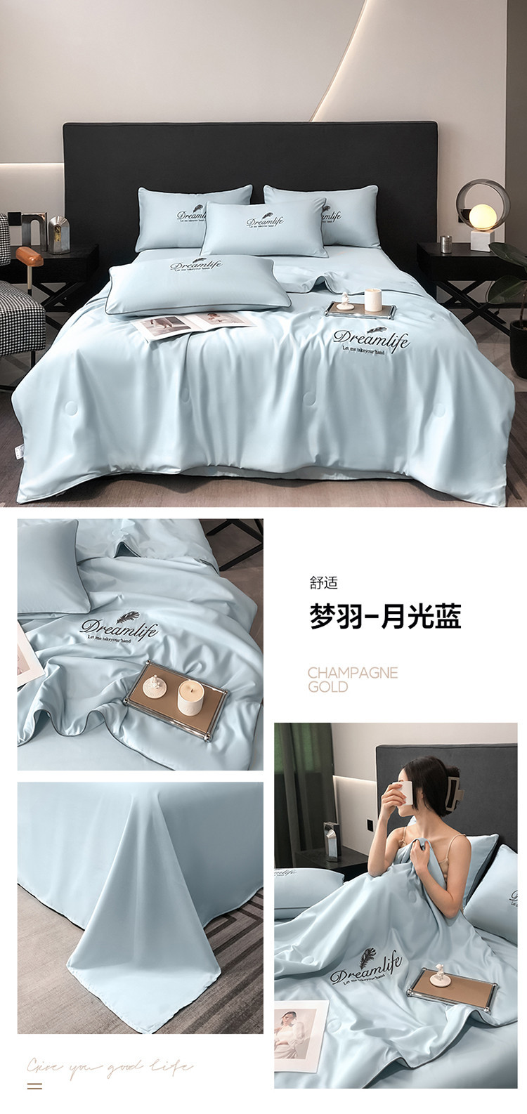 여름 워시 실크 여름 이불, 시원한 여름 이불, 얼음 실크 여름 이불, 4피스 에어컨 이불, 얇은 이불 소스 도매스토어 가기