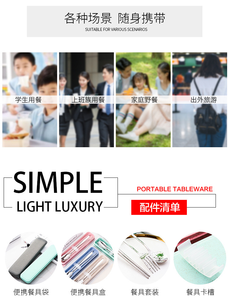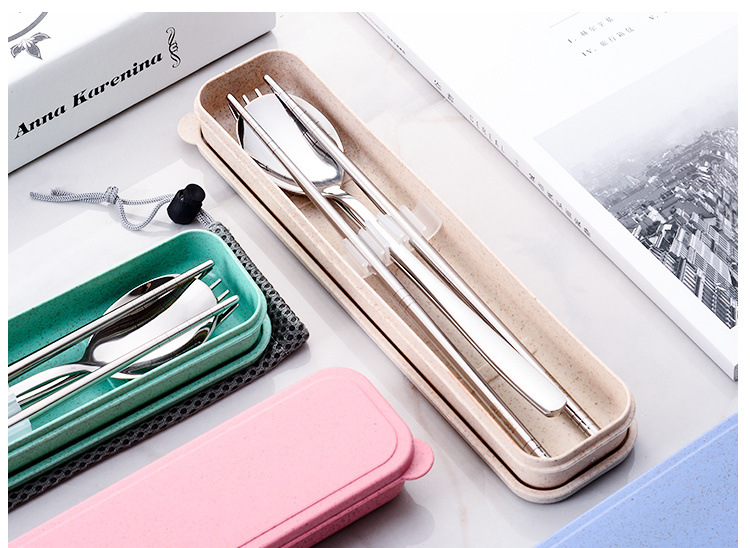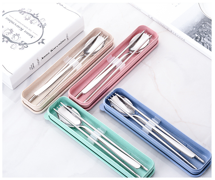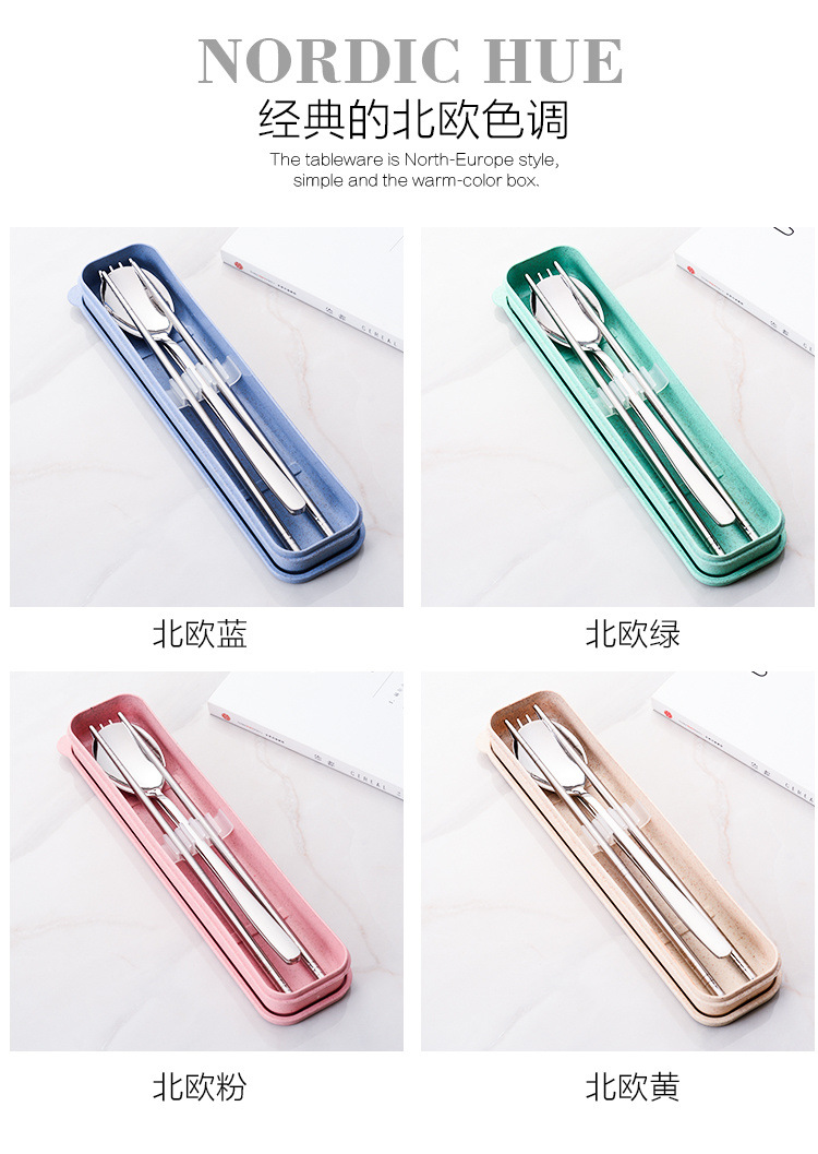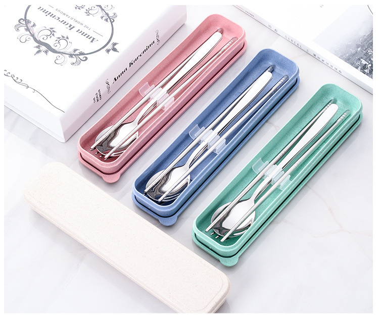 304 휴대용 식기 젓가락 숟가락 세트 학생 귀여운 숟가락 포크 젓가락 2/3 조각 야외 여행 젓가락 상자스토어 가기