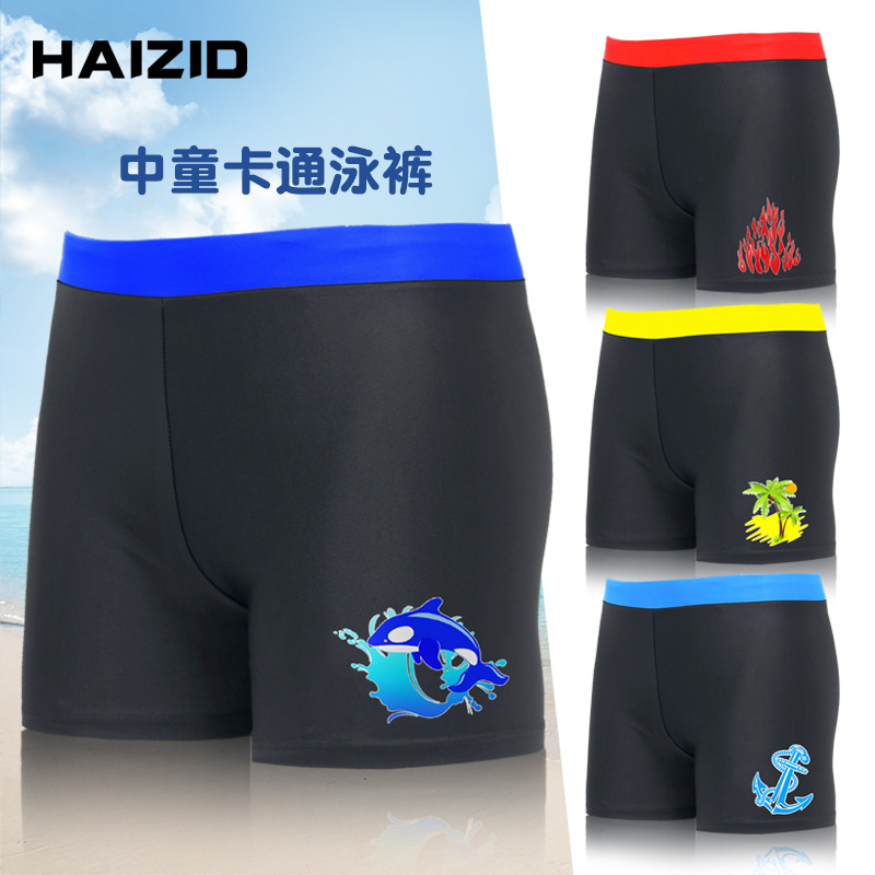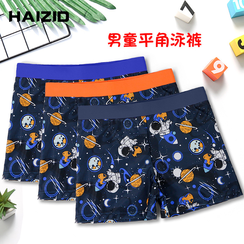남아, 중소형, 대형 아동용 아동 수영 팬티, 고탄성 심플 캐주얼 수영 팬티, 사각 패턴 남아 사각 수영 팬티