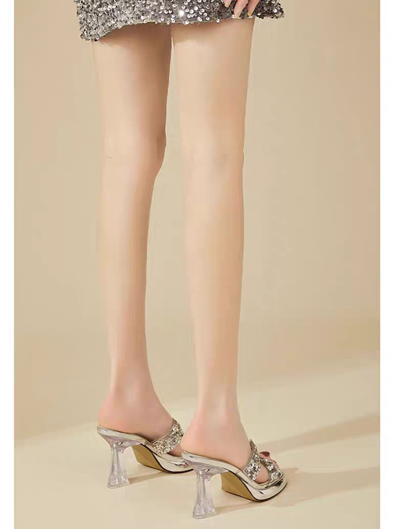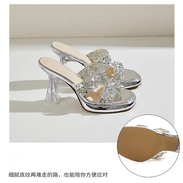 한국식 두꺼운 밑창 라인스톤 하이힐 2025 발이 피곤하지 않은 샌들, 우아한 두꺼운 굽의 여성용 플랫폼 슬리퍼스토어 가기