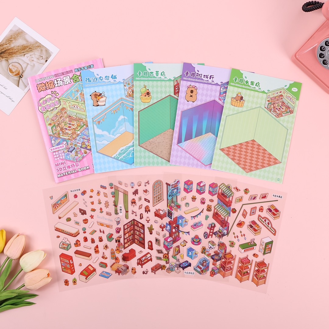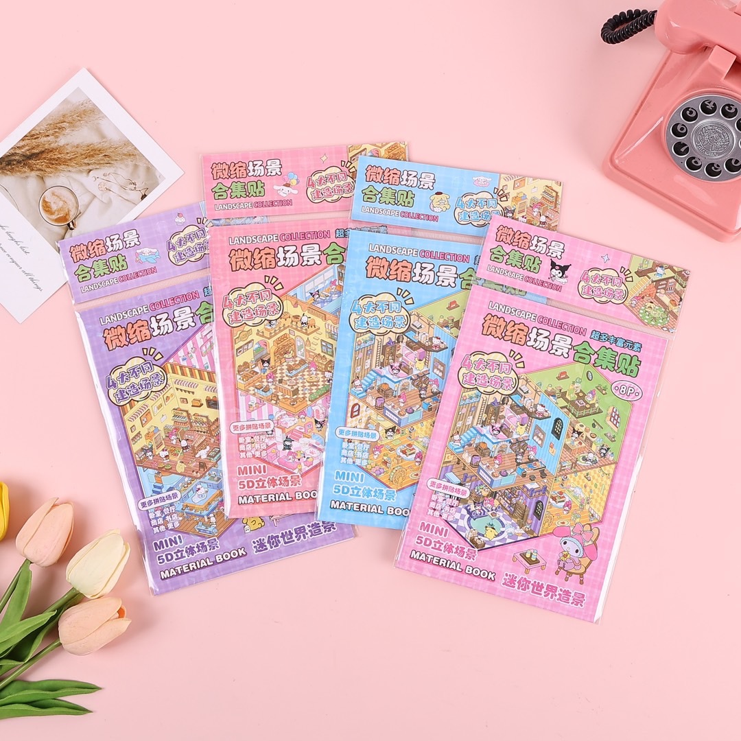 산리오 풍경 스티커 미니어처 장면 컬렉션이 그물 빨간 어린이 5D 입체 장면 소녀 수제 DIY 스티커스토어 가기