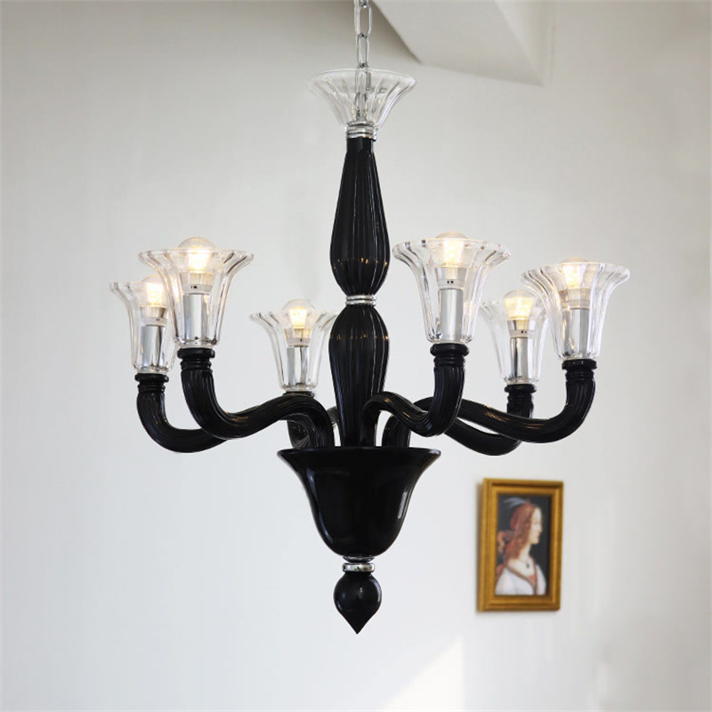 골동품 프랑스 스타일 무라노 엔트리 럭셔리 유리 레트로 블랙 레스토랑 샹들리에 침실 조명 촛불 거실 메인 라이트