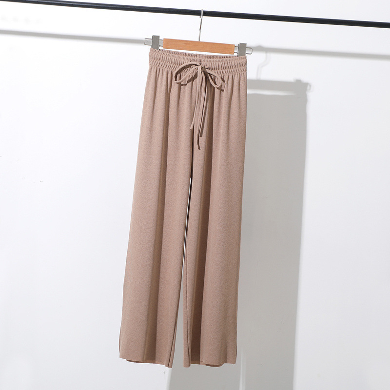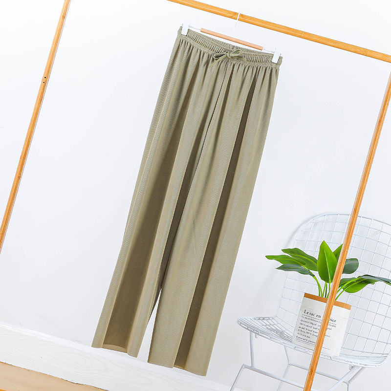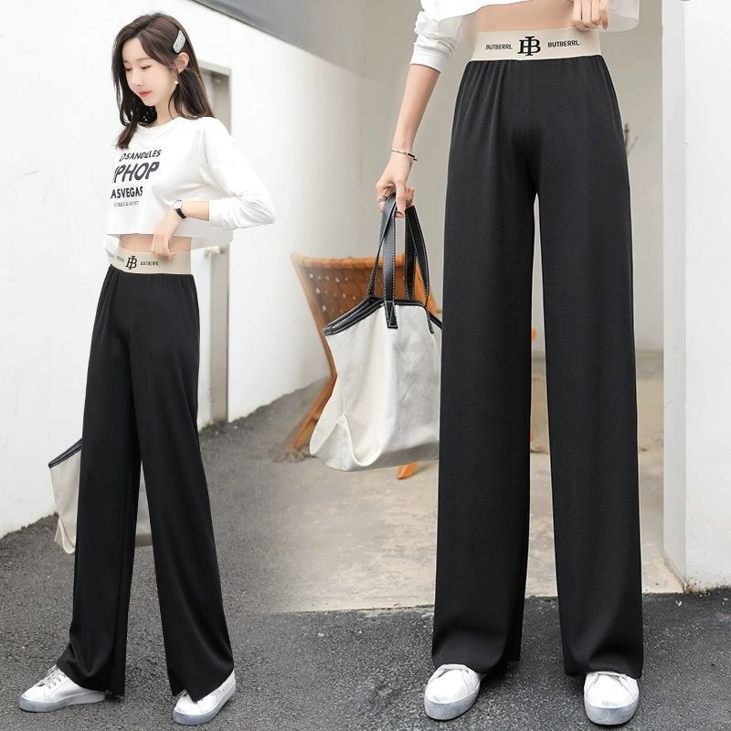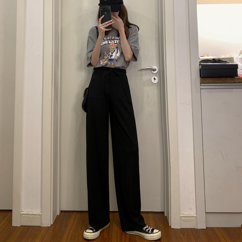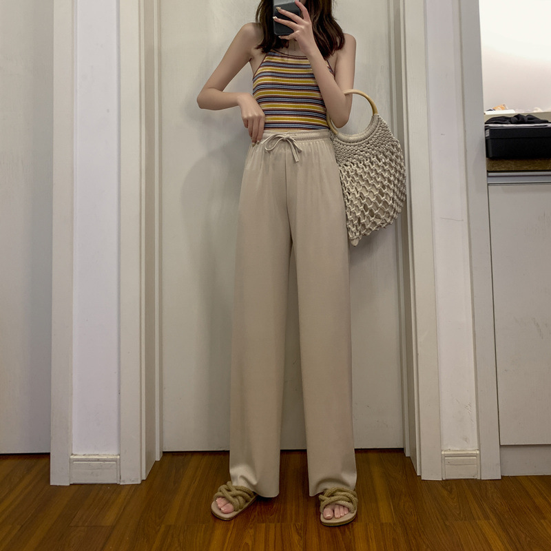 아이스 실크 넓은 다리 바지 여성 펜던트 봄과 여름 새로운 스타일 슬리밍 캐주얼 바지 높은 허리 얇은 학생 자른 스트레이트 바지