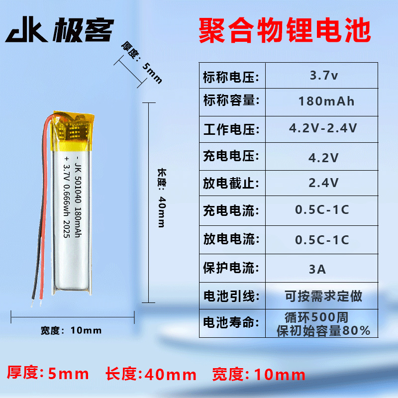 • 501040-180mAh 배터리 셀
