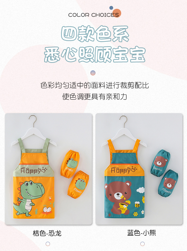 어린이 앞치마 그림은 유치원 소년과 소녀 아기 저녁 식사 턱받이 소년 소녀 더러운 그림 예술 역 드레싱을 다룬다.