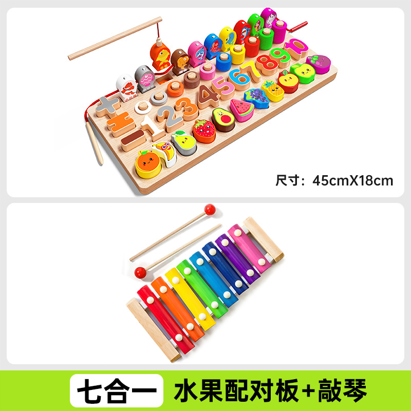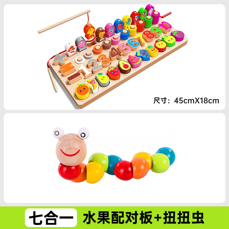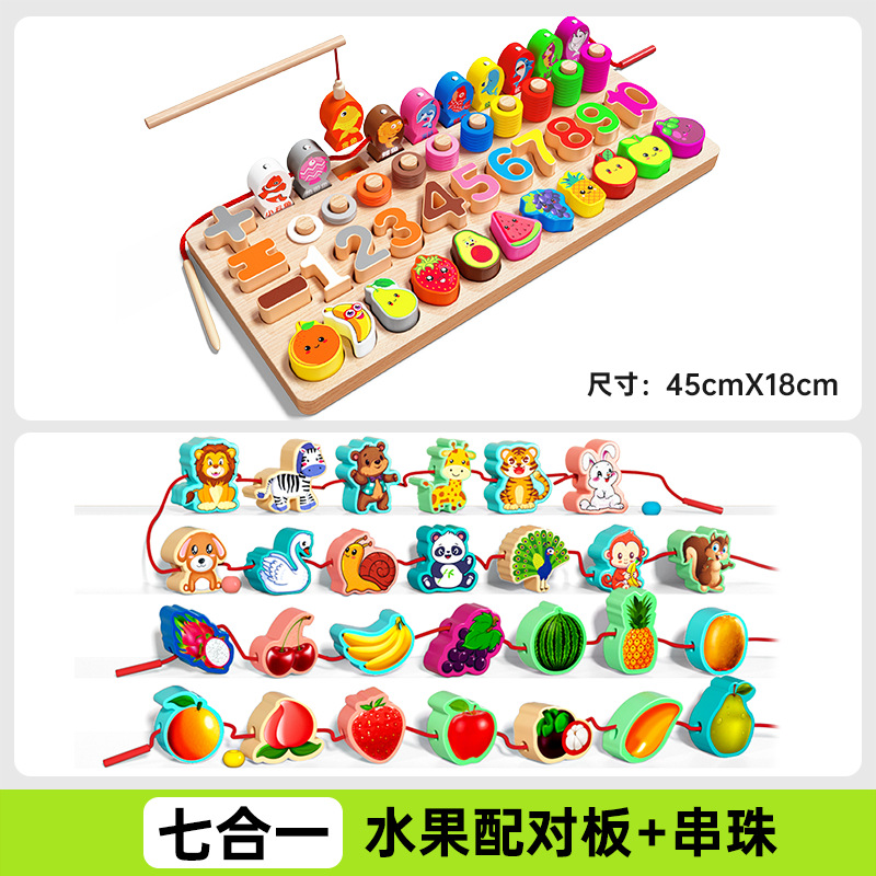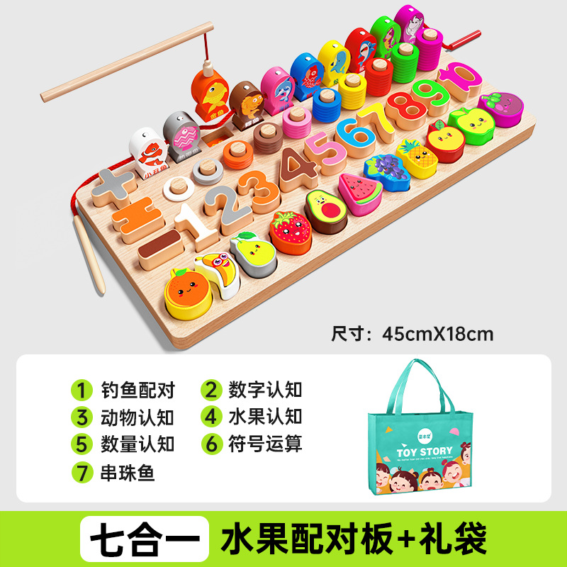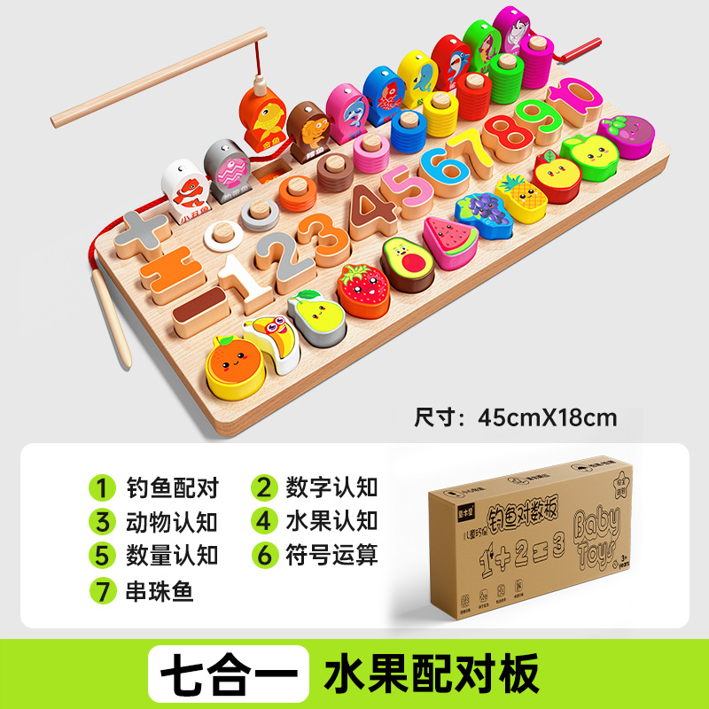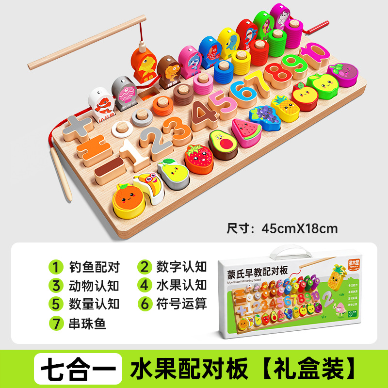 • 7-in-1 과일 모델 [숫자 + 과일 + 낚시 + 고리 + 덧셈과 뺄셈 + 구슬 물고기 + 동물 인식] + 선물 상자 모델