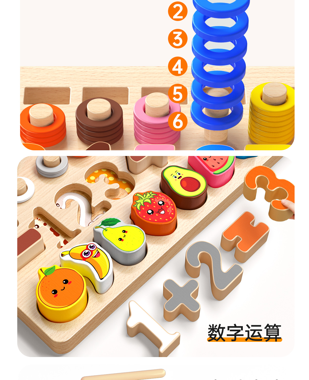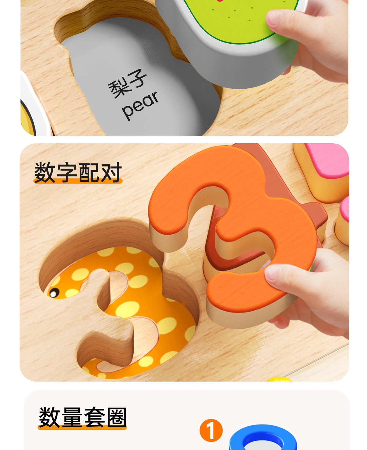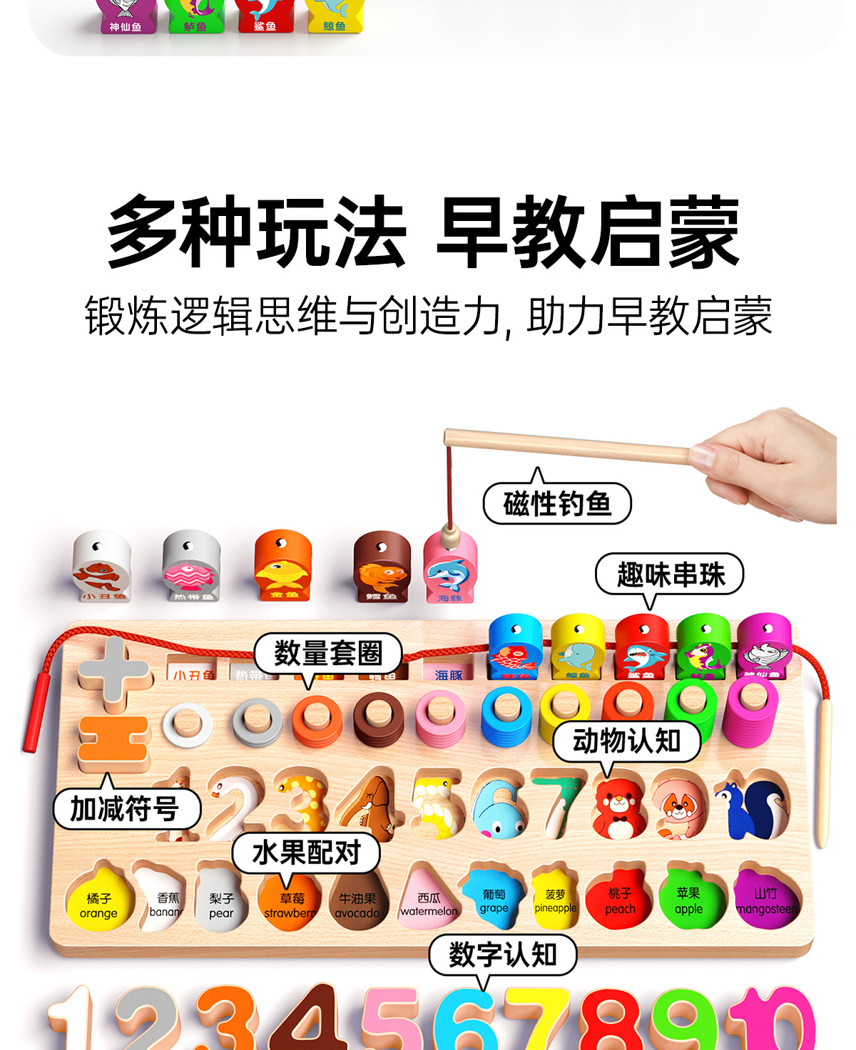 • 7-in-1 과일 모델 [숫자 + 과일 + 낚시 + 고리 + 덧셈과 뺄셈 + 구슬 물고기 + 동물 인식] + 선물 상자 모델