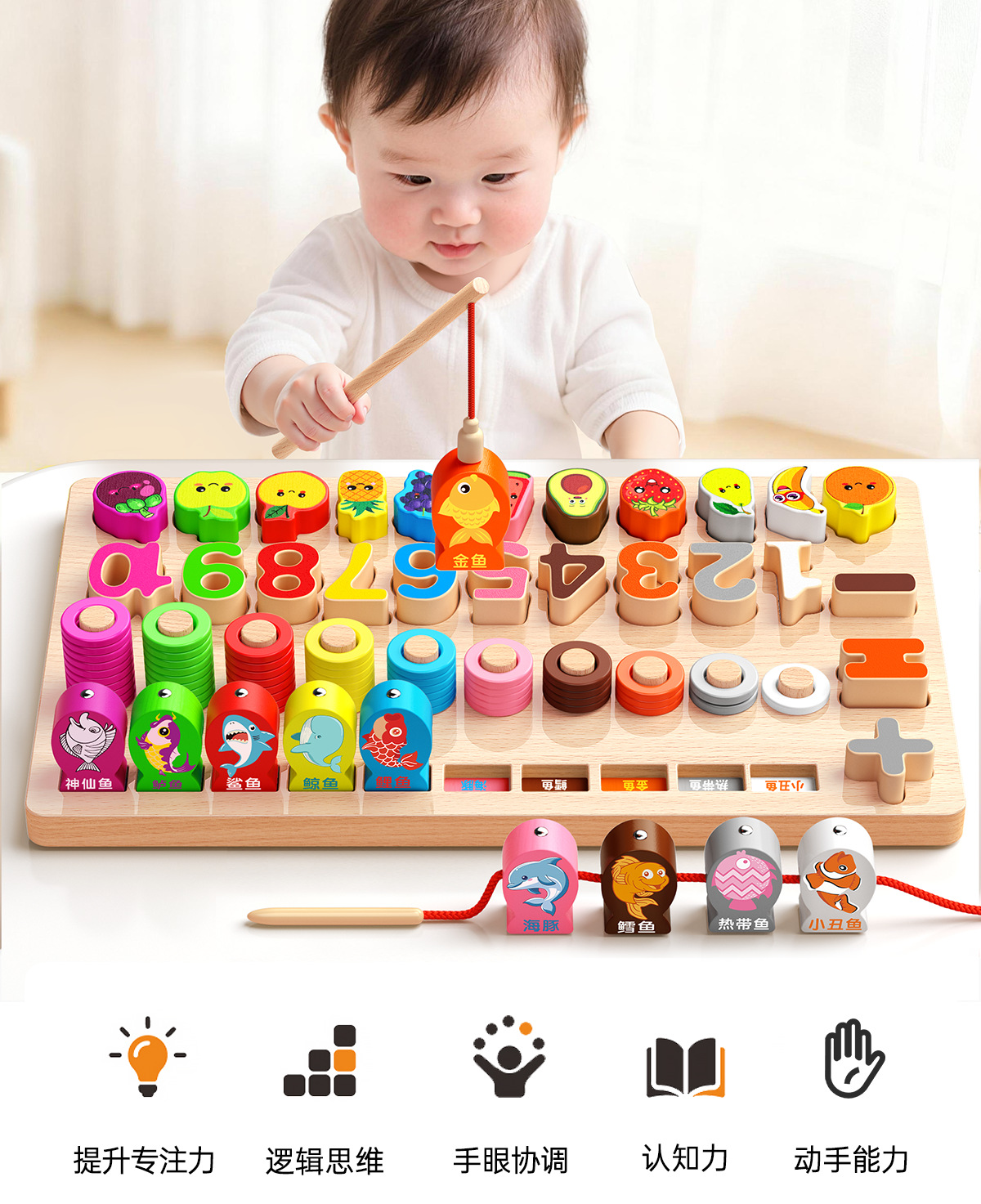 어린이 낚시 장난감 교육용 블록 몬테소리 조기 교육 교육용 숫자 퍼즐 인지 매칭 장난감 나무 장난감스토어 가기