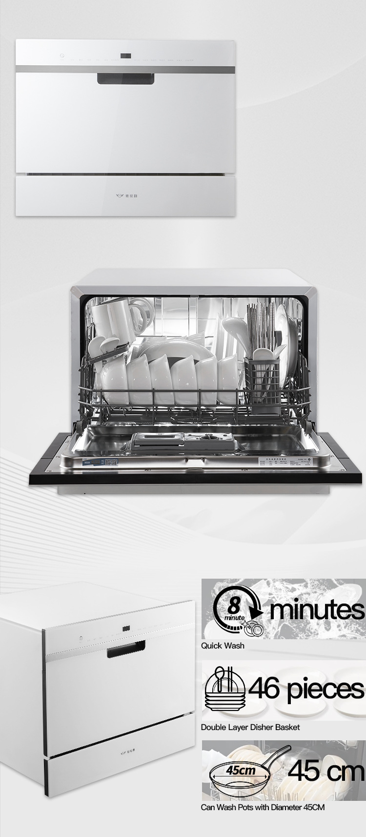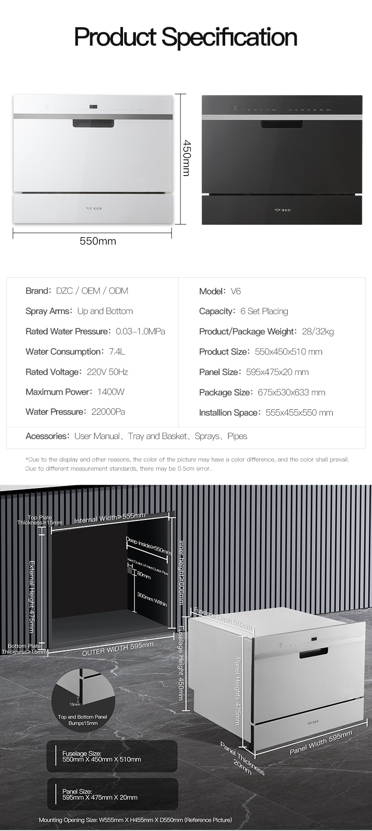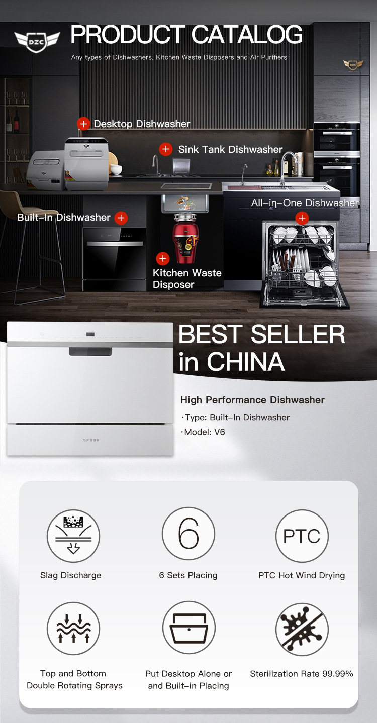 Deshi 주방 식기세척기 내장형 데스크탑 이중 목적 V6 세트 소독 및 건조 예약 2개의 스프레이로 물과 전기를 절약 6인용