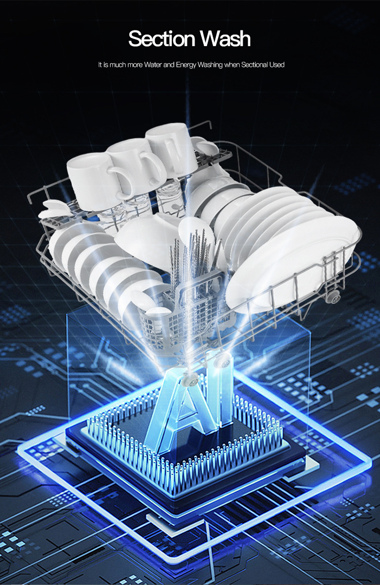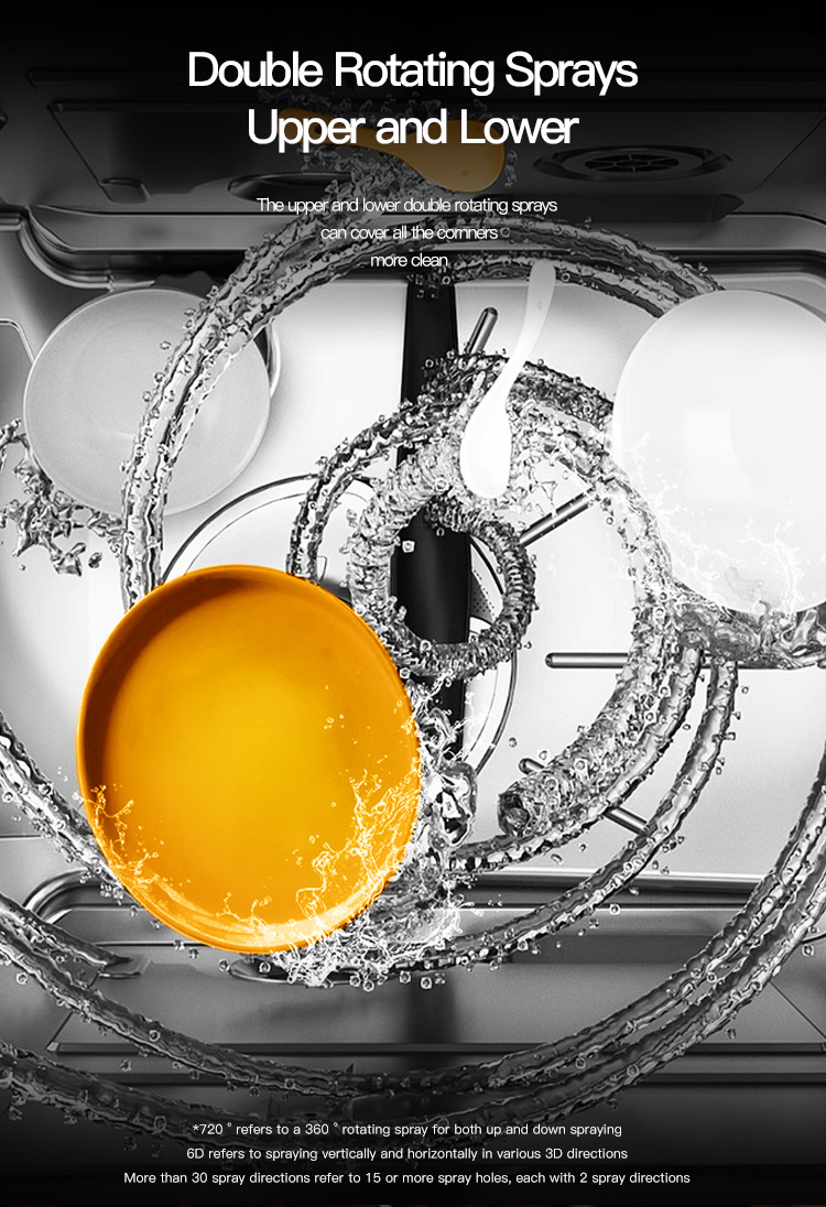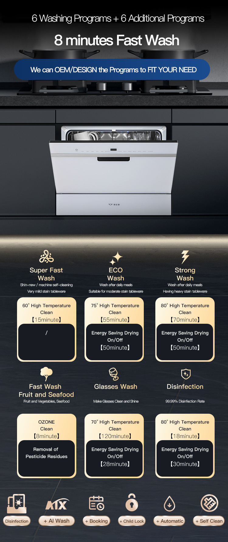 Deshi 주방 식기세척기 내장형 데스크탑 이중 목적 V6 세트 소독 및 건조 예약 2개의 스프레이로 물과 전기를 절약 6인용