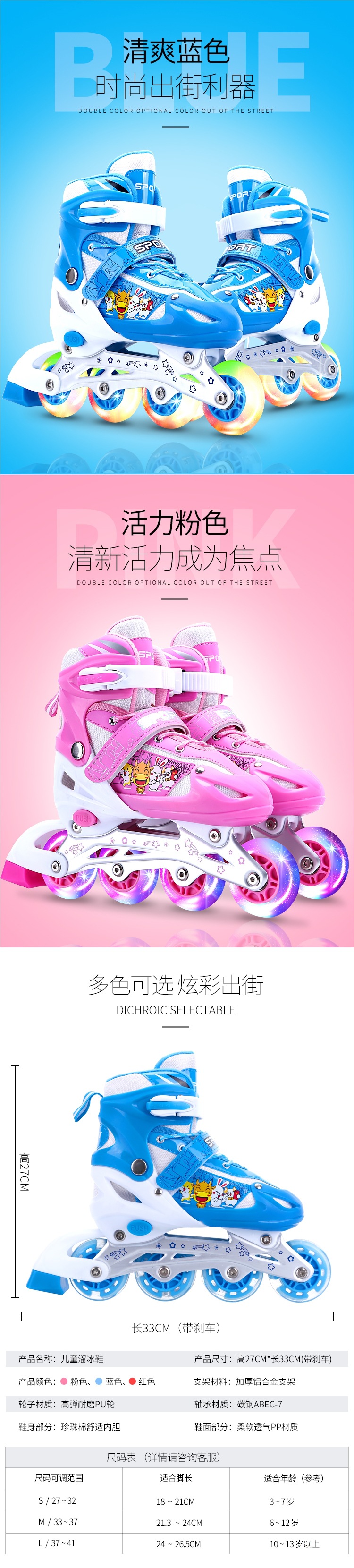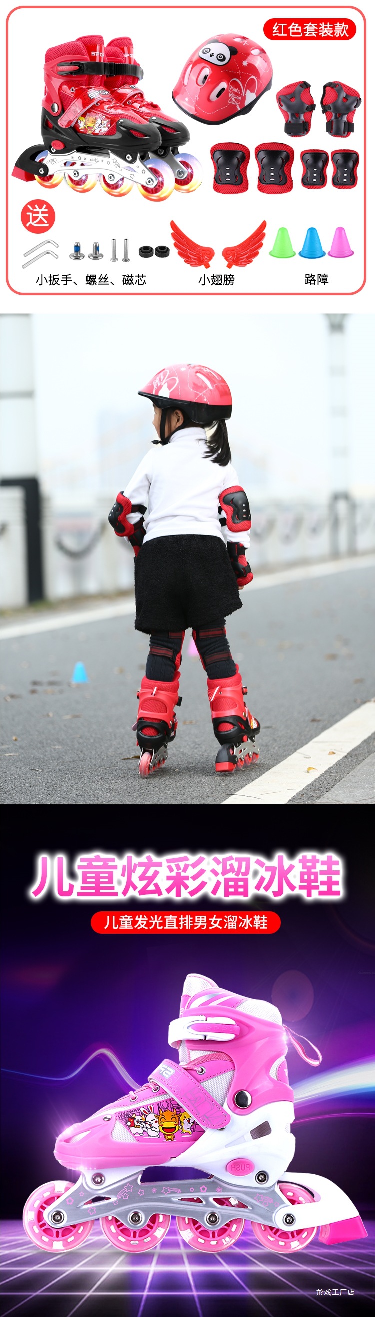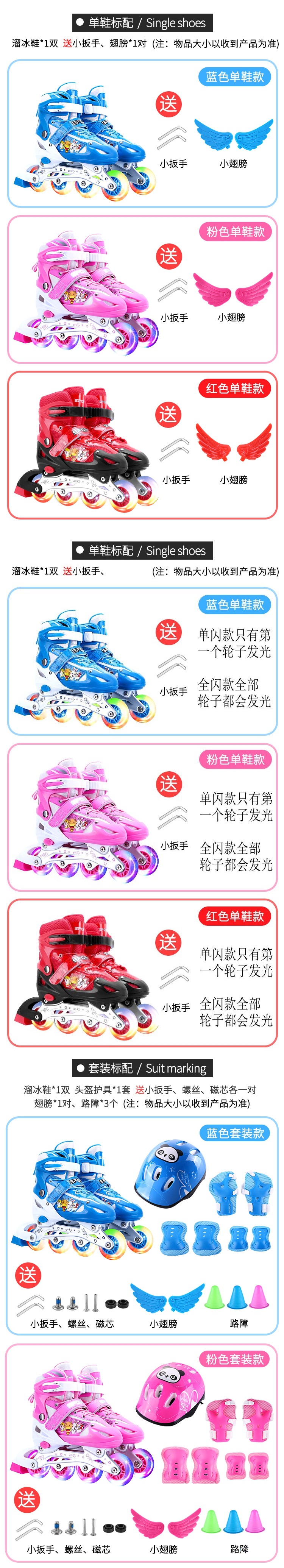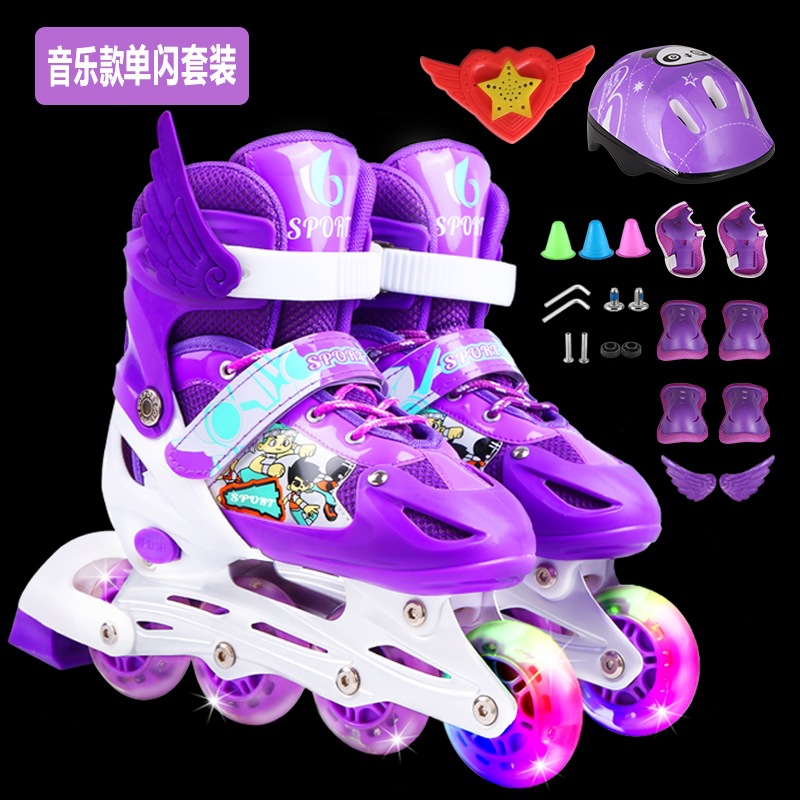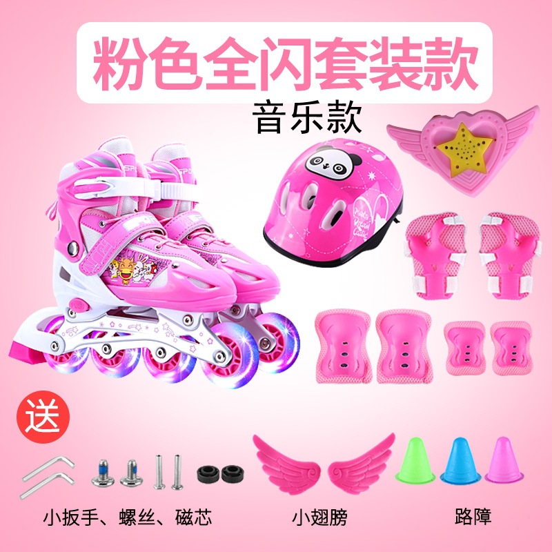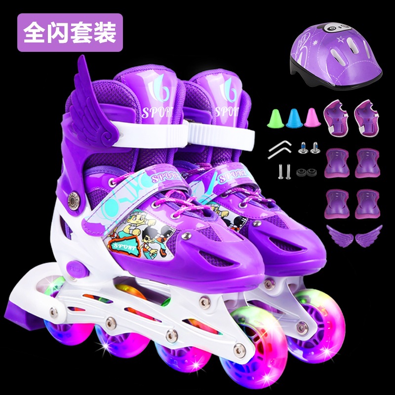 롤러 스케이트 어린이 풀 세트 세트 3-6 초보자 5 조정 가능한 크기 8 롤러 4 소년 12 여자 10 년