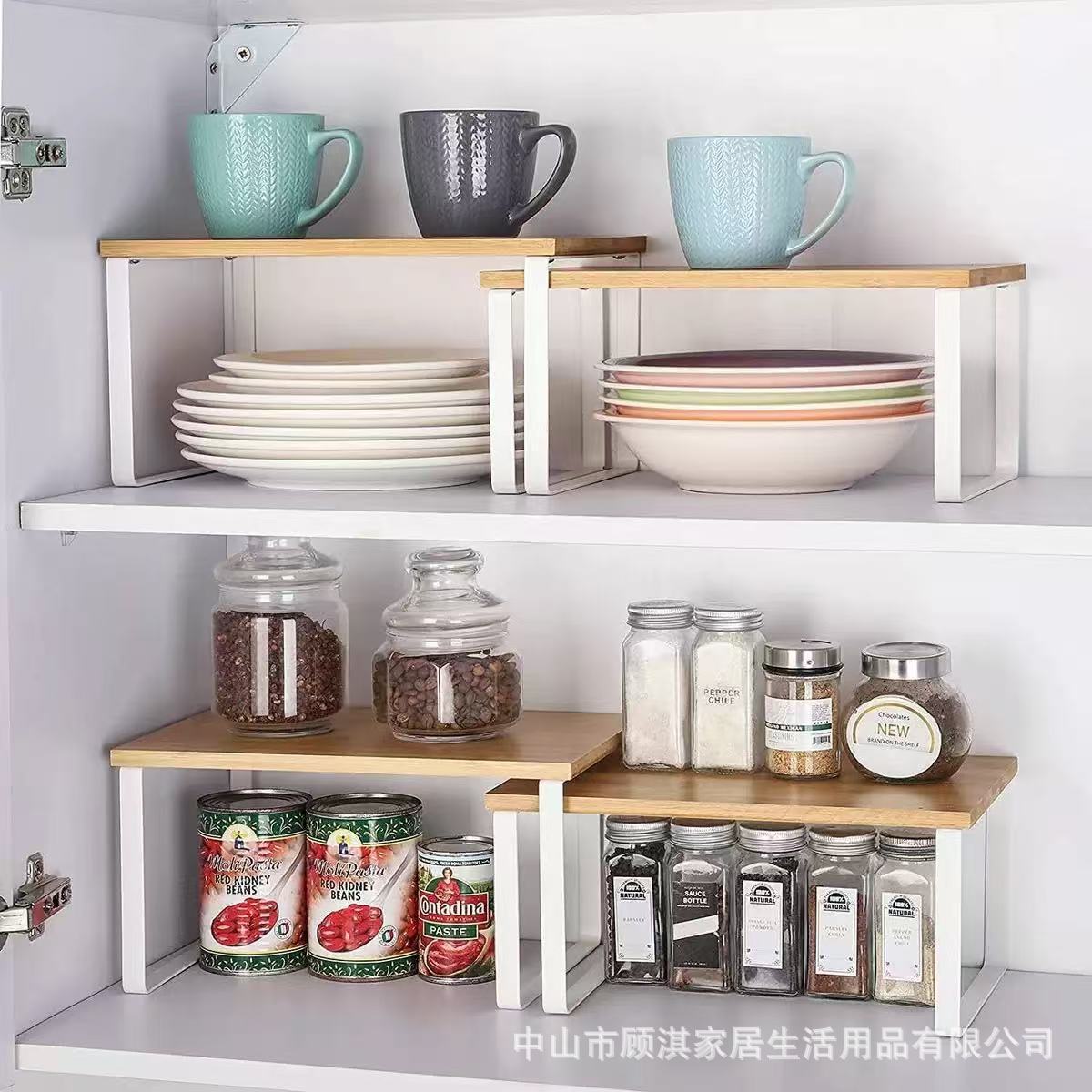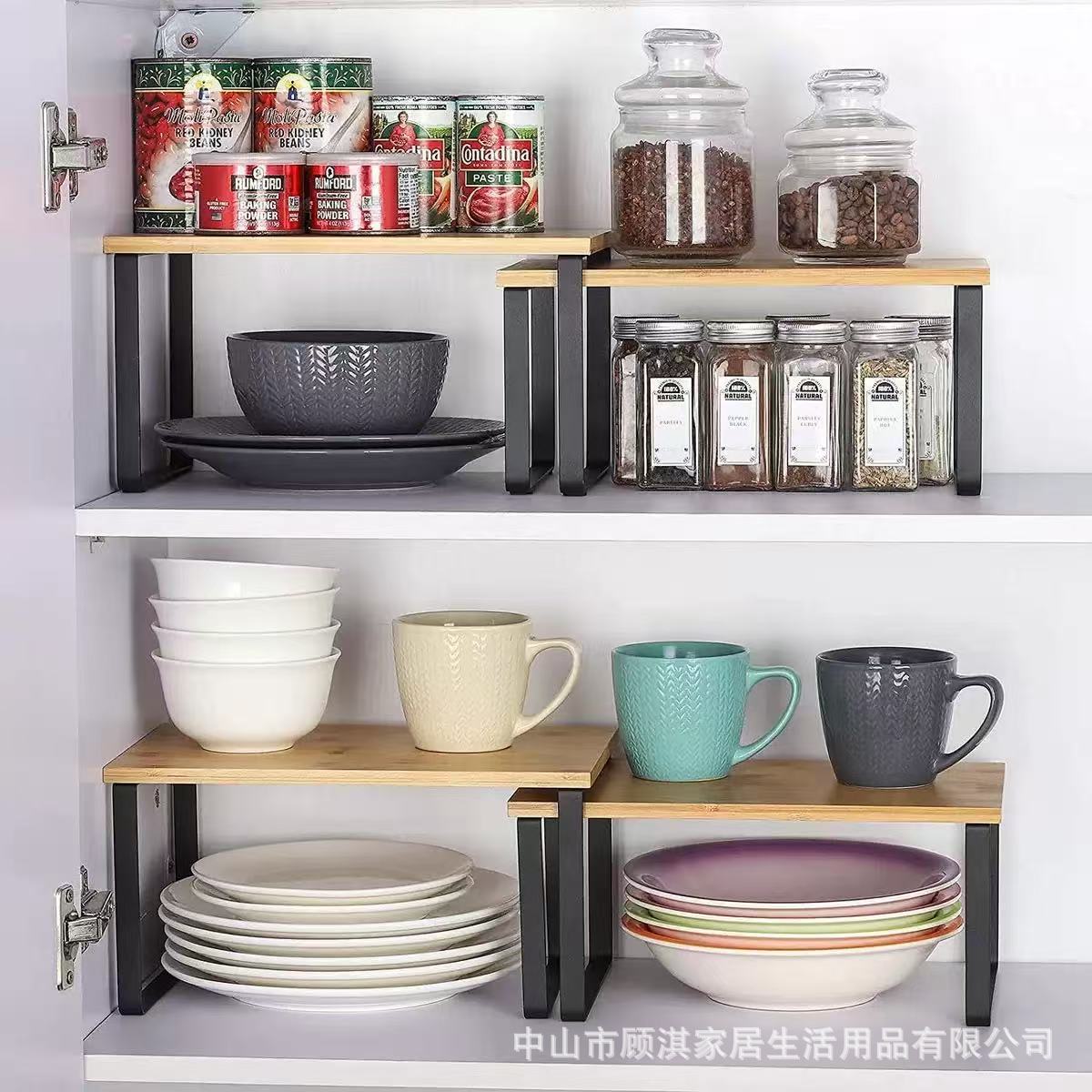 국경 간 목재 캐비닛 보관 랙 2피스 주방 보관 랙 조미료 랙은 쌓을 수 있고 확장 가능합니다.스토어 가기