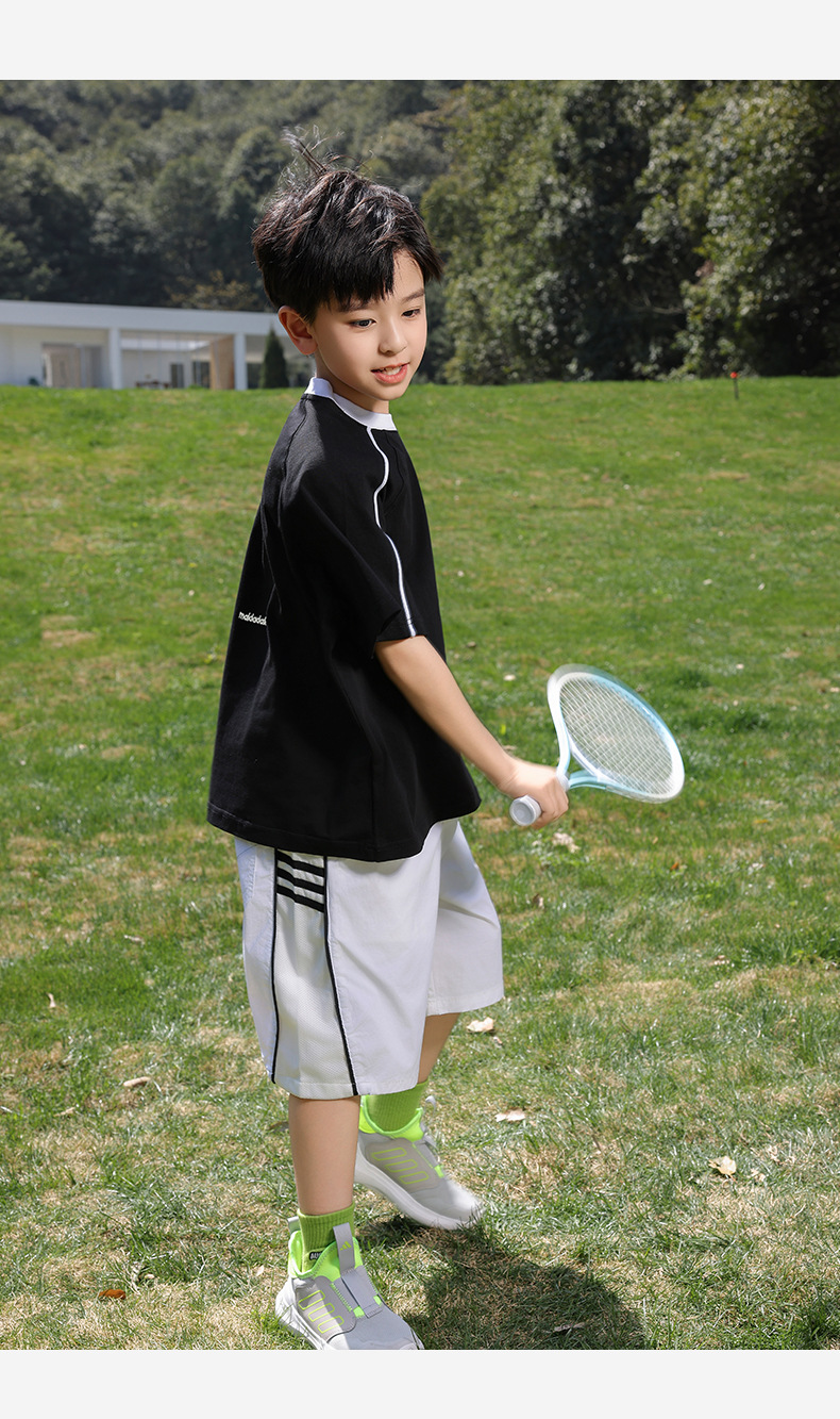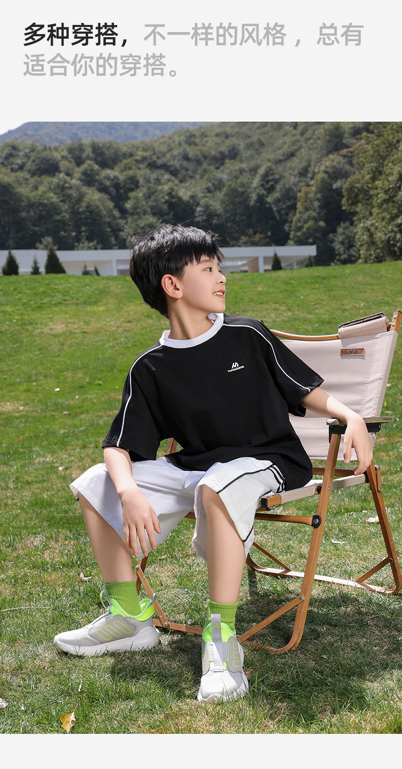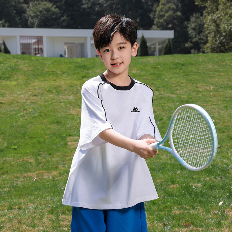 팬더 Yuanyuan 2025 새로운 소년 티셔츠 여름 벌집 빠른 건조 옷 큰 어린이 7A 항균 스포츠 탑스토어 가기