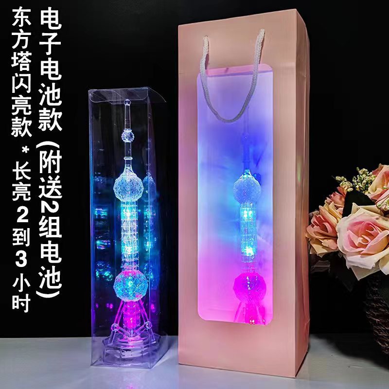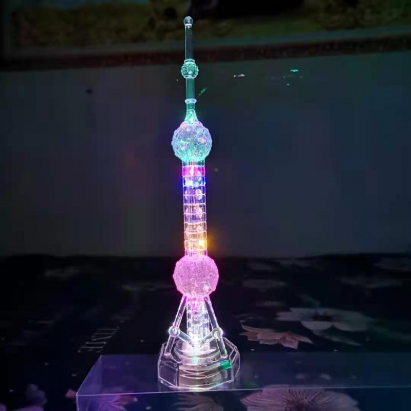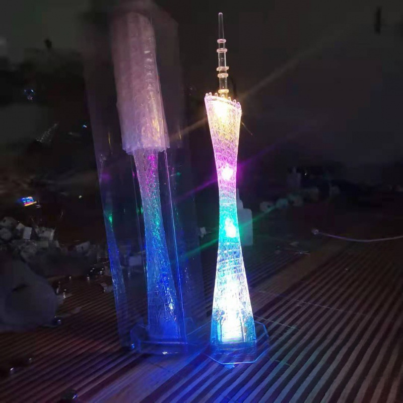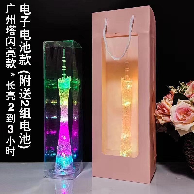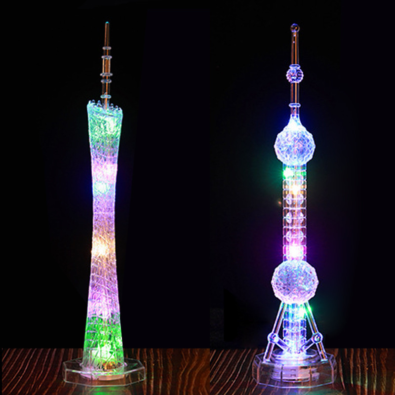 플라스틱 공예품 새로운 동양의 진주 타워 기념품 광저우 타워 작은 벨트 램프 다채로운 색상 변경 플래시 타워