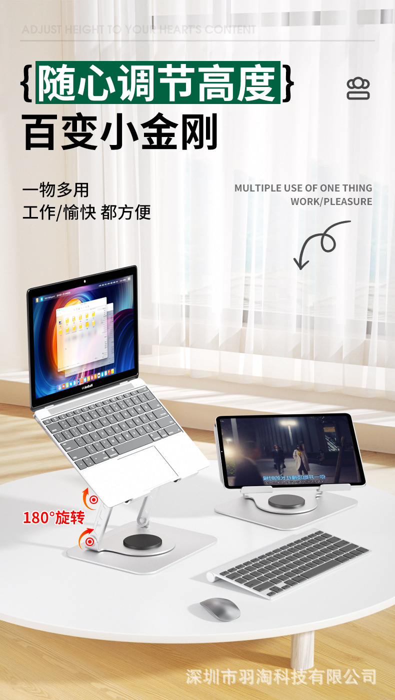 회전 노트북 스탠드 수직 데스크탑 높이 조절 중공 냉각 랙 리프팅 접이식 금속 태블릿 스탠드
