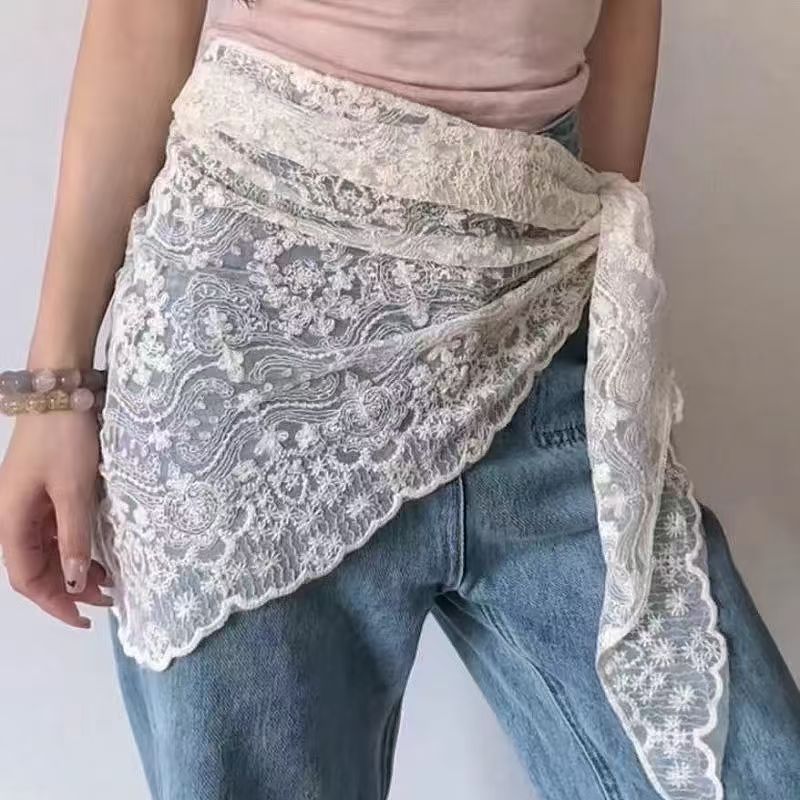 한국식 디자인 감각 봄과 여름 패션 올 매치 레이스 1 스티칭 레이스 업 장식 삼각형 방귀 커튼 앞치마 프리 사이즈