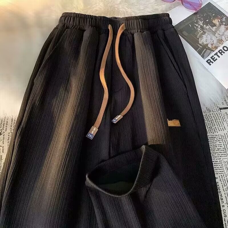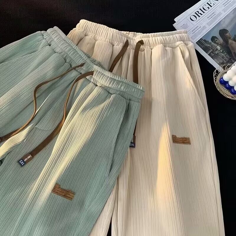 아이스 실크 캐주얼 바지 남자 여름 얇은 하이 엔드 올 매치 와이드 레그 바지 한국식 트렌디 루즈 스포츠 스트레이트 바지