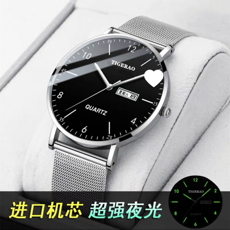 자동 기계식 시계 남자 학생 한국 패션 유행 더블 달력 방수 조명