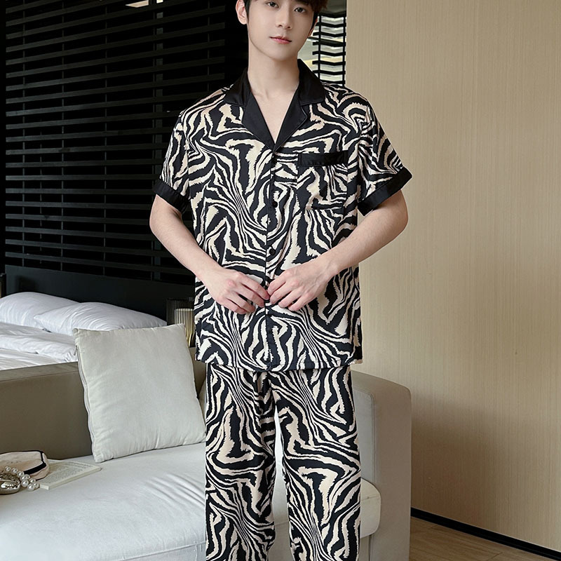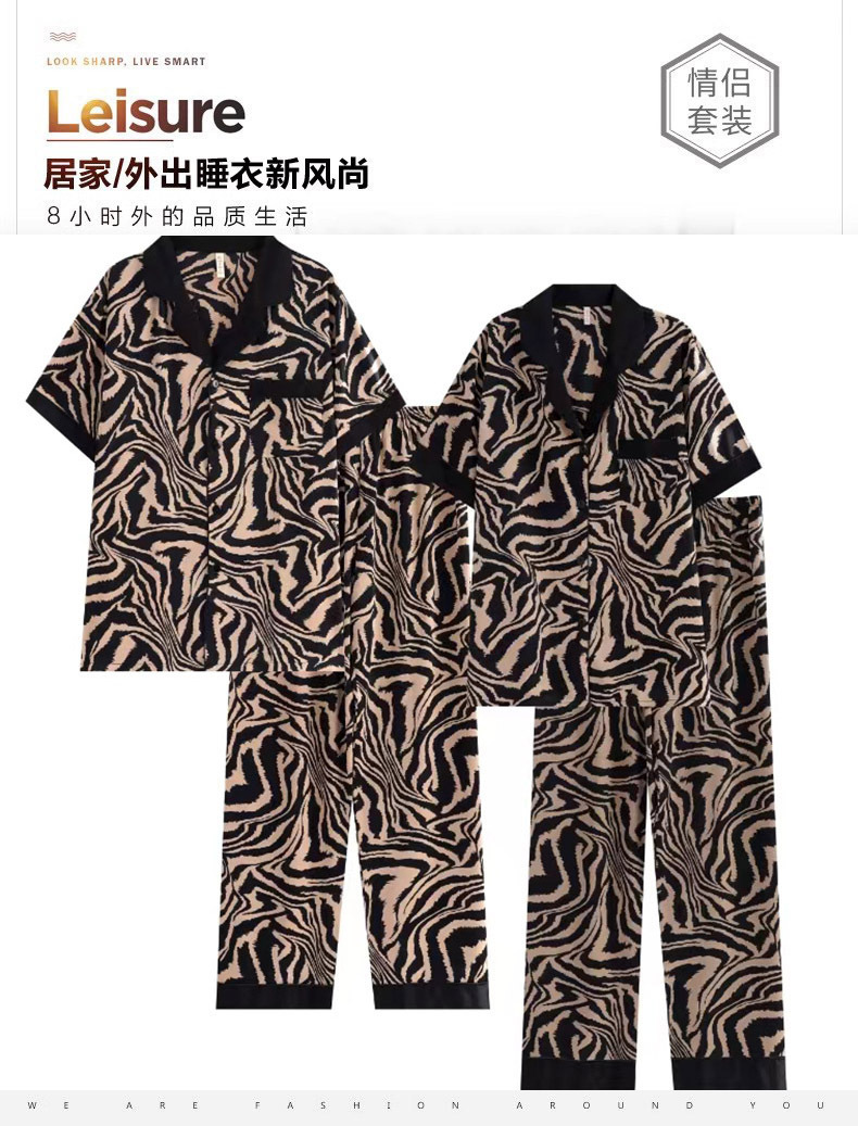 Jinqingye 하이 엔드 라이트 럭셔리 커플 잠옷 봄 얼음 실크 반팔 양복 여성용 얇은 남성용 홈웨어는 외부에 착용 가능스토어 가기