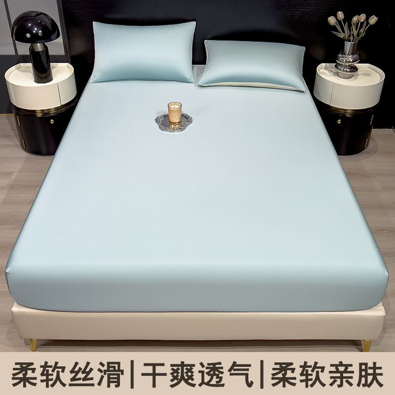 25 개의 새로운 아이스 실크 침대 모자 싱글 여름 단색 침대보 모든 포함 침대 시트 3 피스 세트 여름 냉각 시원한 침대 시트스토어 가기
