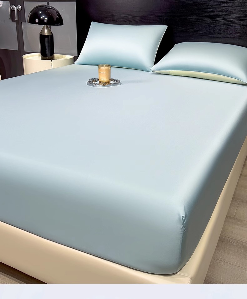 25 개의 새로운 아이스 실크 침대 모자 싱글 여름 단색 침대보 모든 포함 침대 시트 3 피스 세트 여름 냉각 시원한 침대 시트