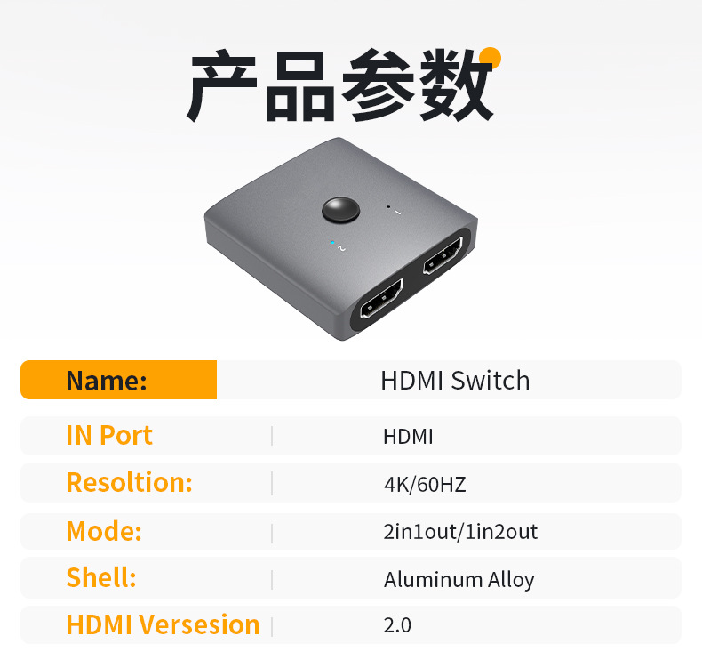 HDMI 스위치 2입력 1출력 4K HD HDMI 양방향 스위치 노트북 TV 프로젝터 변환기