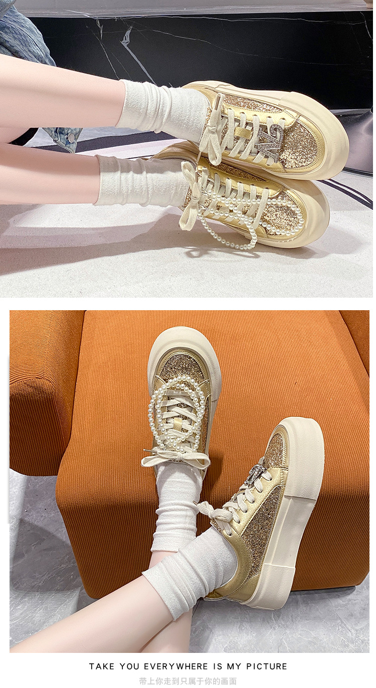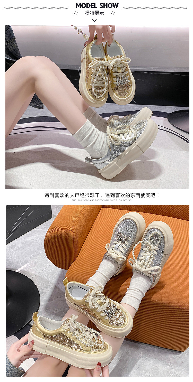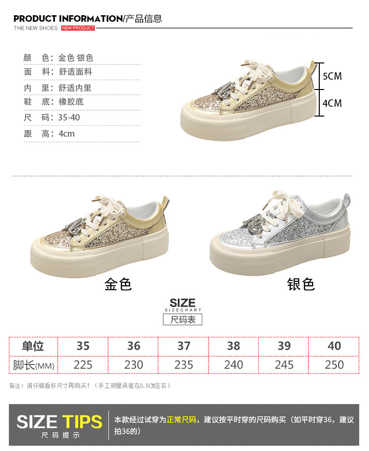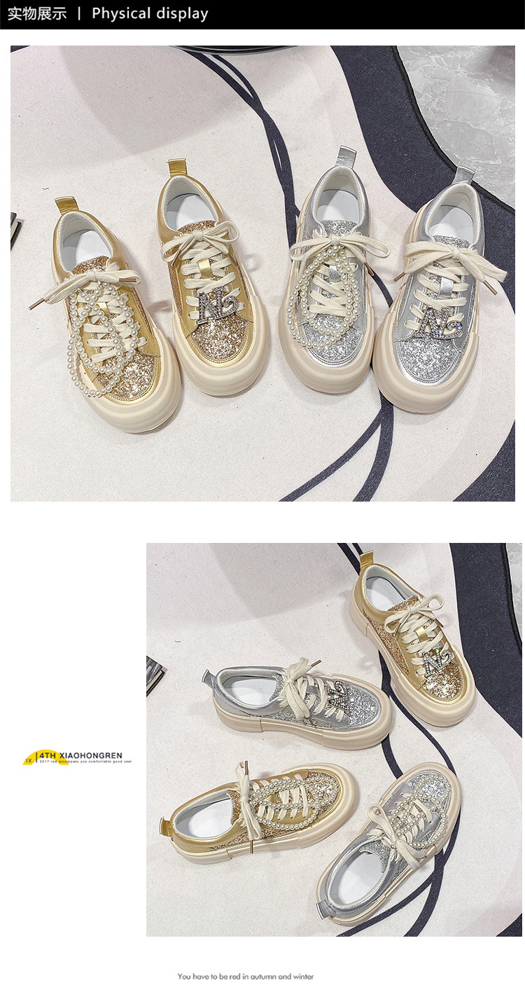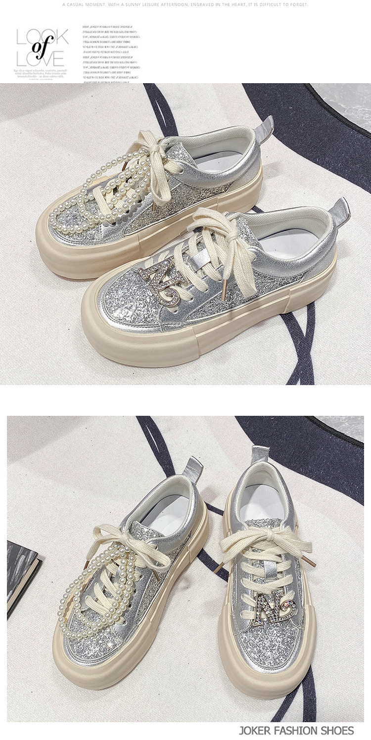 여성을위한 두꺼운 밑창 패션 운동화 2025 새로운 봄, 가을 스타일 핫 스타일 라인 석 실버 스포츠 편안한 캐주얼 신발 트렌드