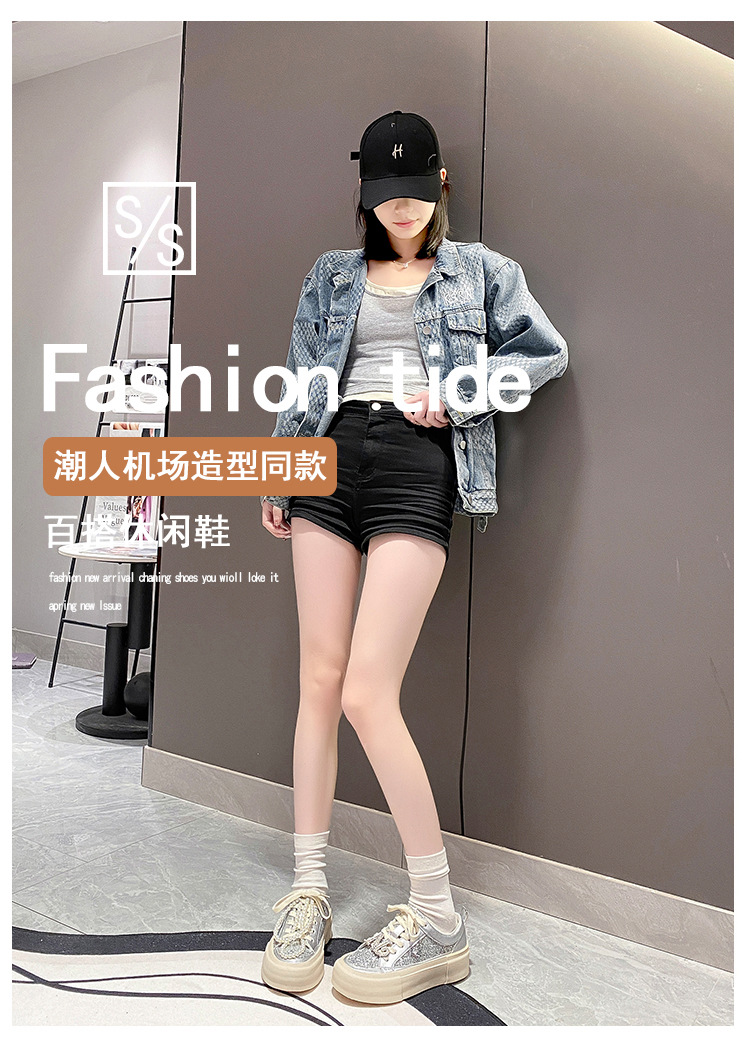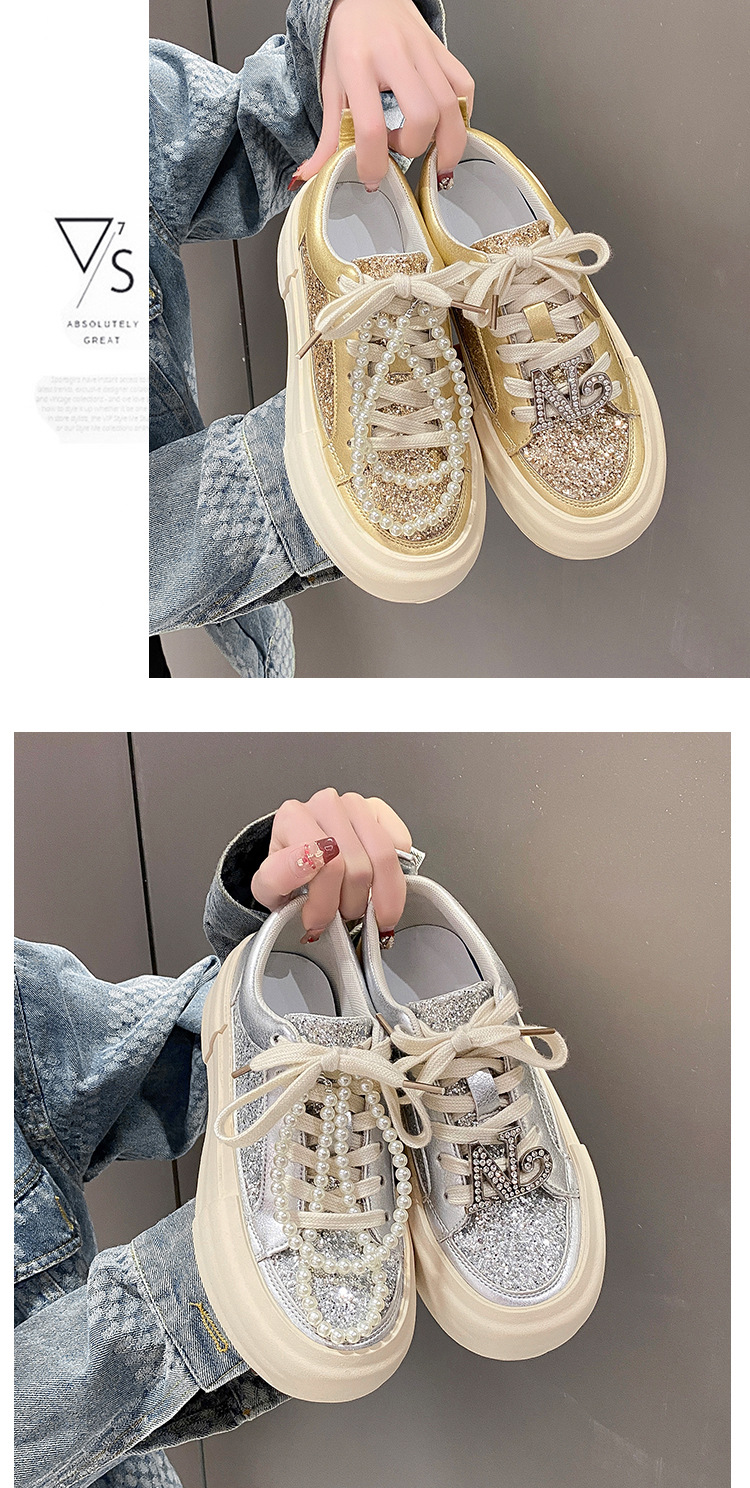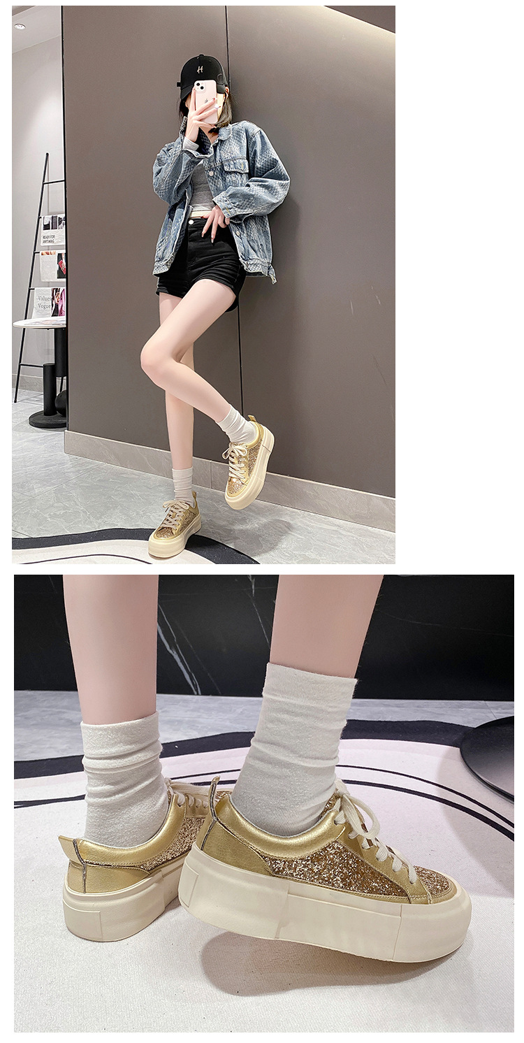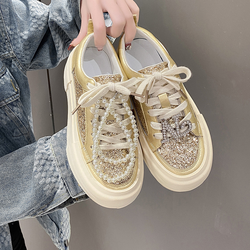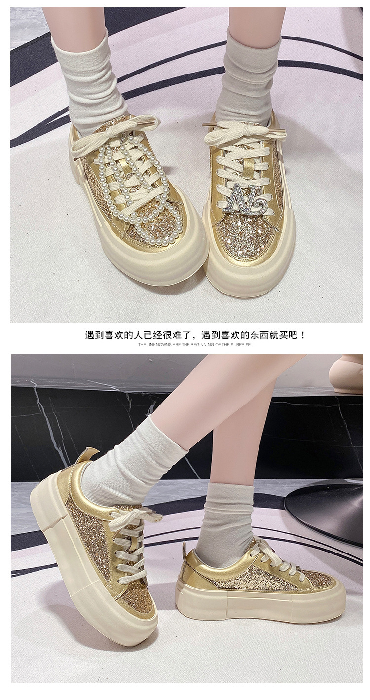 여성을위한 두꺼운 밑창 패션 운동화 2025 새로운 봄, 가을 스타일 핫 스타일 라인 석 실버 스포츠 편안한 캐주얼 신발 트렌드
