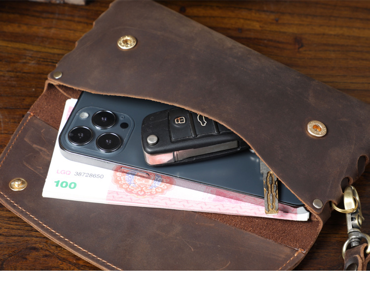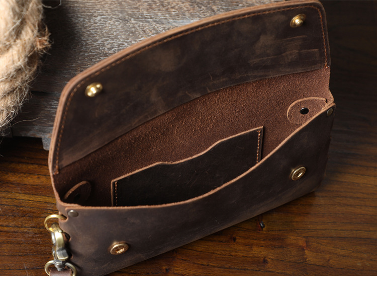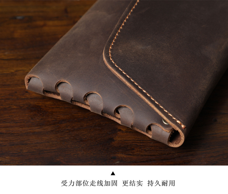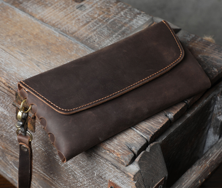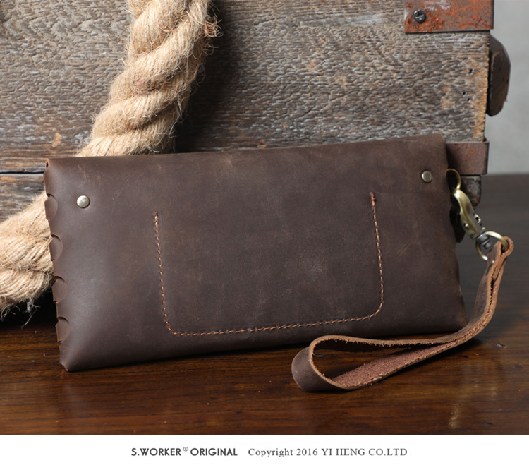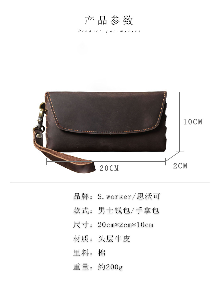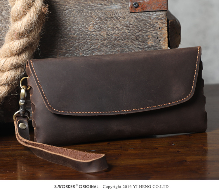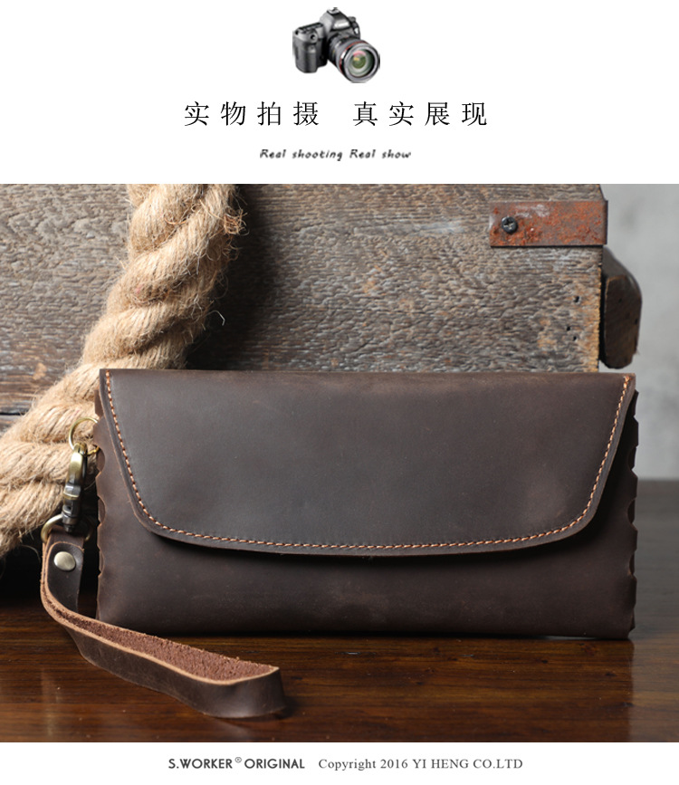 새로운 간단한 미친 말 소 가죽 클러치 남자 복고풍 지갑 대용량 휴대 전화 가방 수제 가죽 유럽과 미국스토어 가기