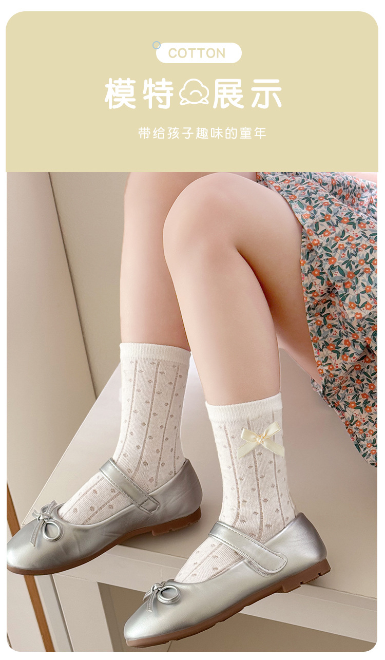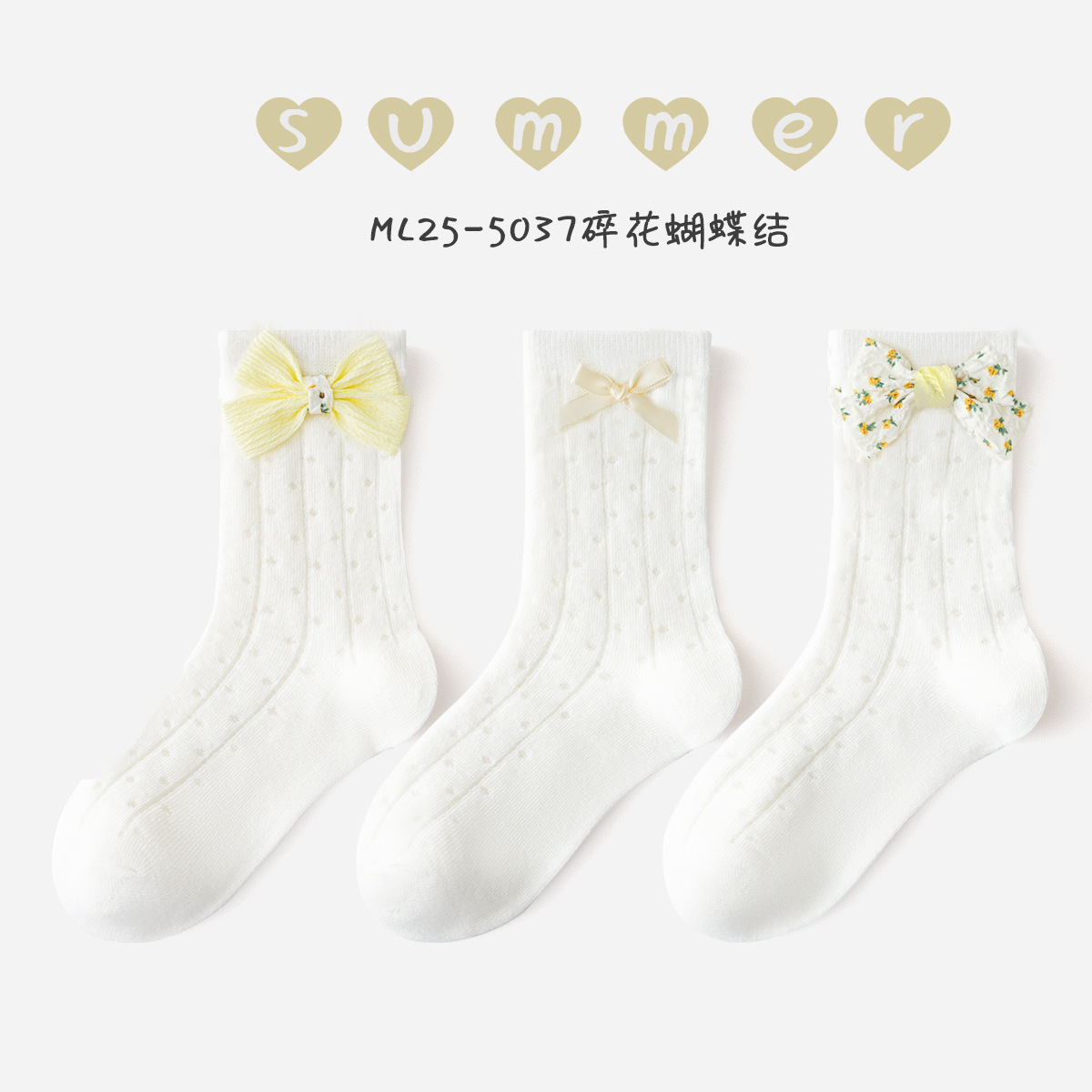 Minliu 여름 소녀 양말 뼈없는 활 공주 바람 봄과 여름 튜브 양말 화이트 로리타 어린이 양말