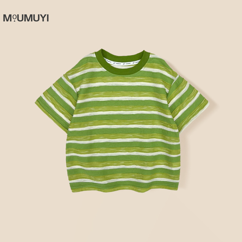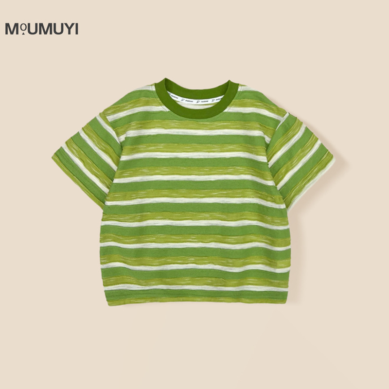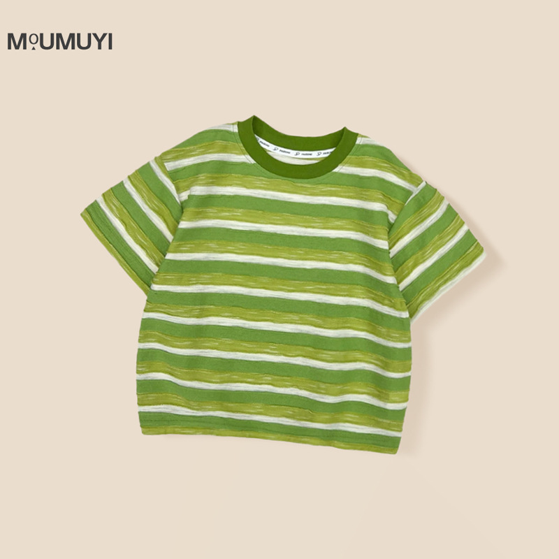 어린이 줄무늬 반팔 2025 여름 새로운 느슨한 반팔 티셔츠 소년 한국 캐주얼 라운드 넥 탑 트렌디 쿨 티셔츠스토어 가기