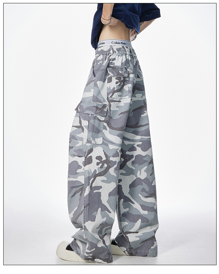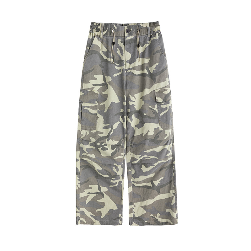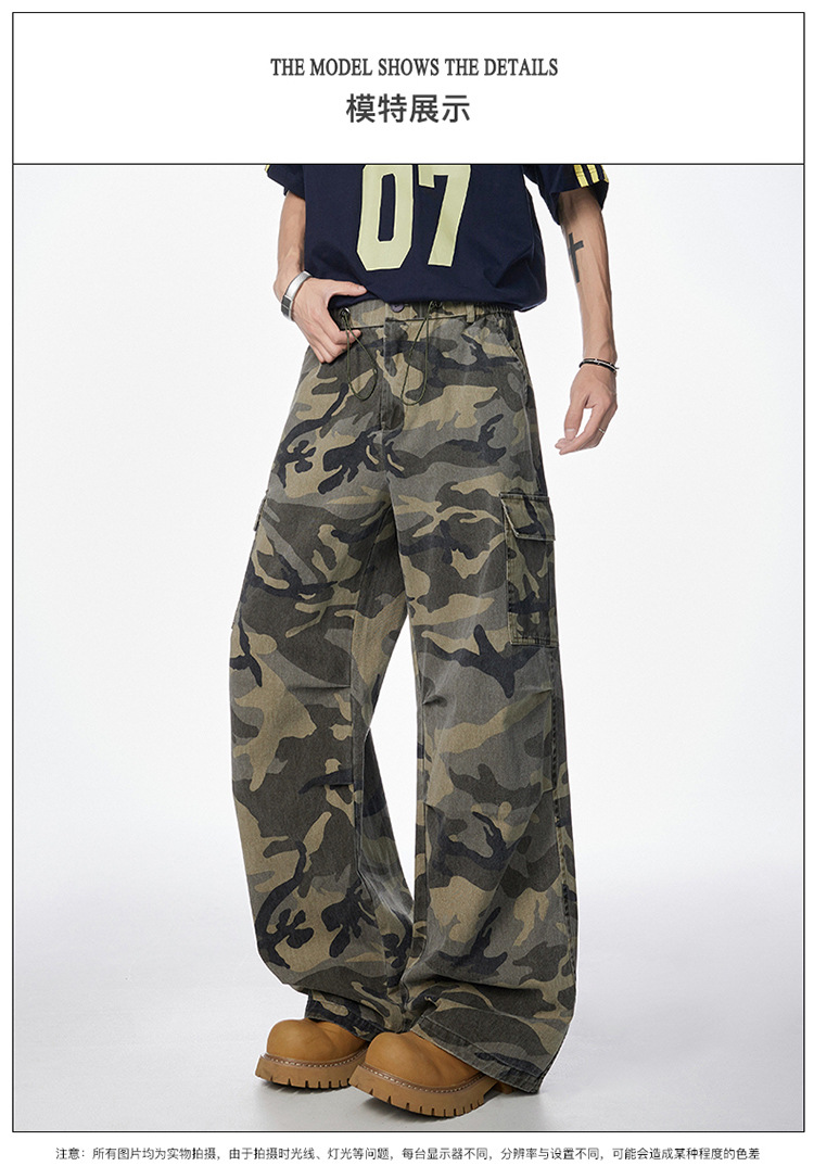 Jianheng 아메리칸 스타일 레트로 위장 오버롤 남성 퓨어 코튼 하이 스트리트 힙합 루즈 스트레이트 홉 캐주얼 바지