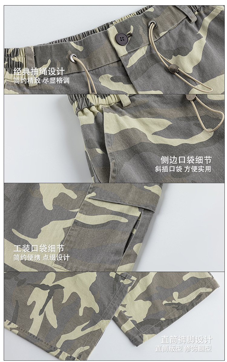 Jianheng 아메리칸 스타일 레트로 위장 오버롤 남성 퓨어 코튼 하이 스트리트 힙합 루즈 스트레이트 홉 캐주얼 바지스토어 가기