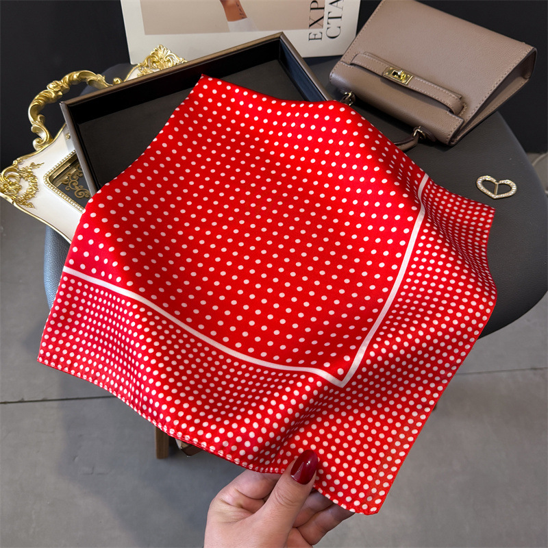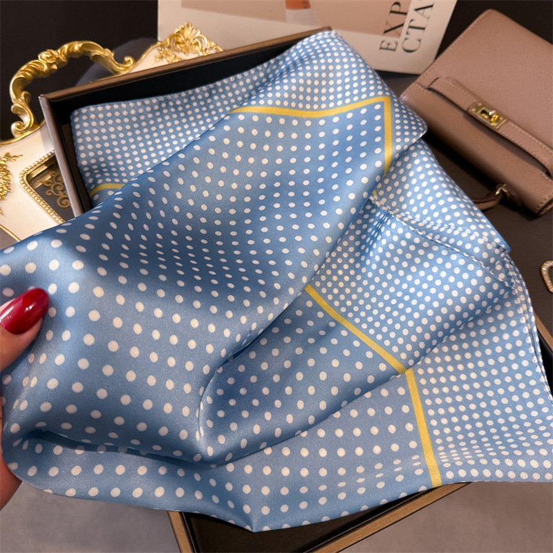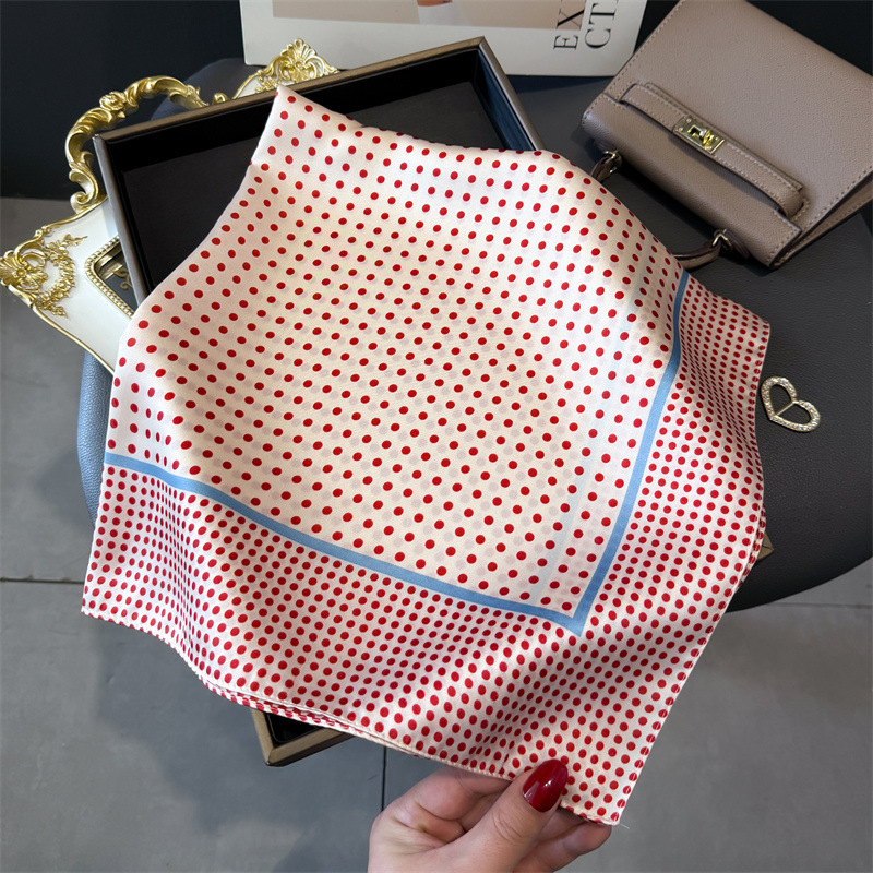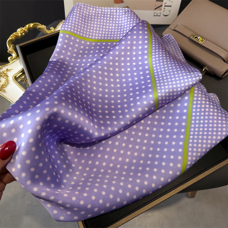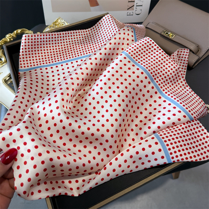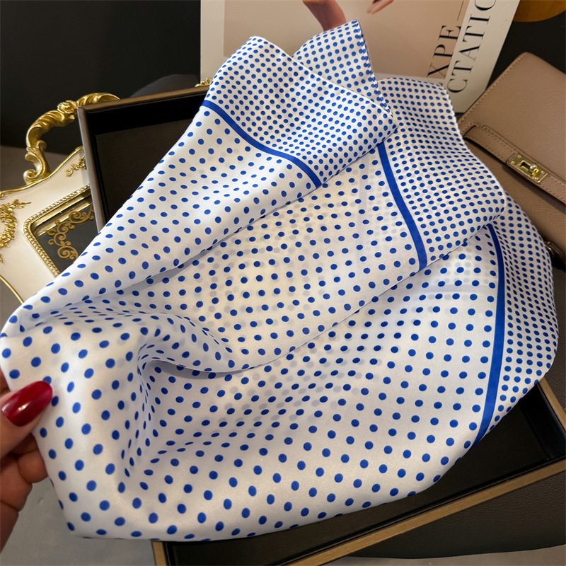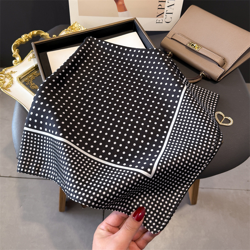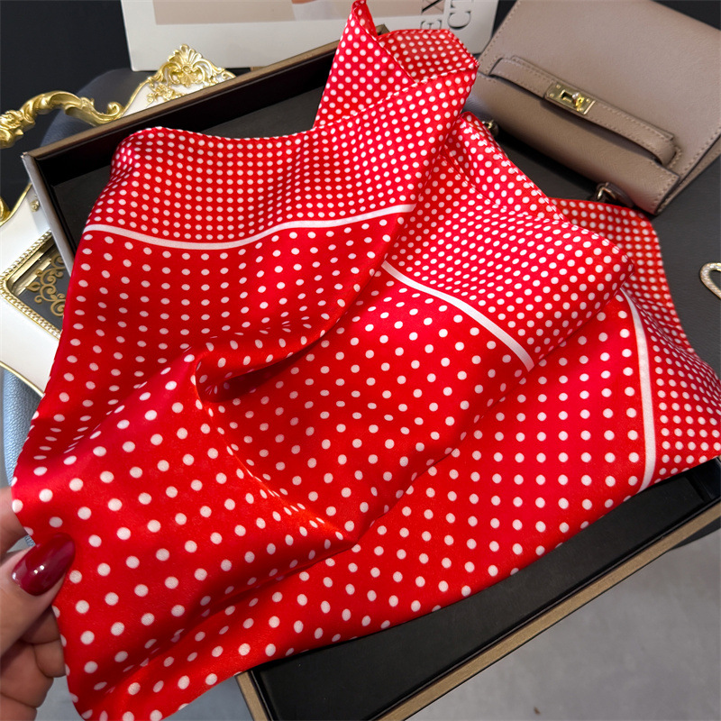 패셔너블한 폴카 도트 스타일 프린트 실크 스카프, 고급 숄, 자외선 차단제, 넥 스카프, 여성용 스카프