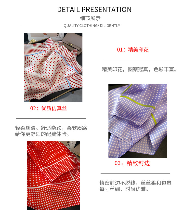 패셔너블한 폴카 도트 스타일 프린트 실크 스카프, 고급 숄, 자외선 차단제, 넥 스카프, 여성용 스카프스토어 가기