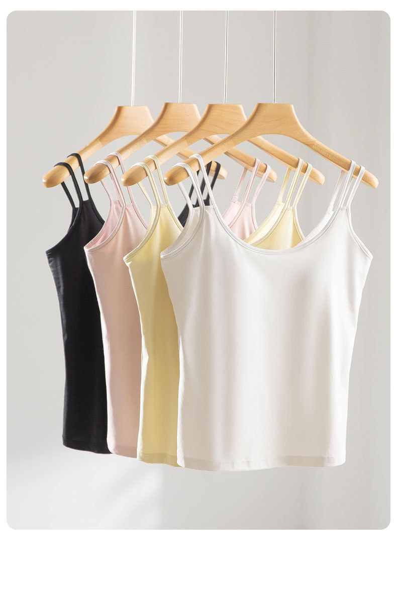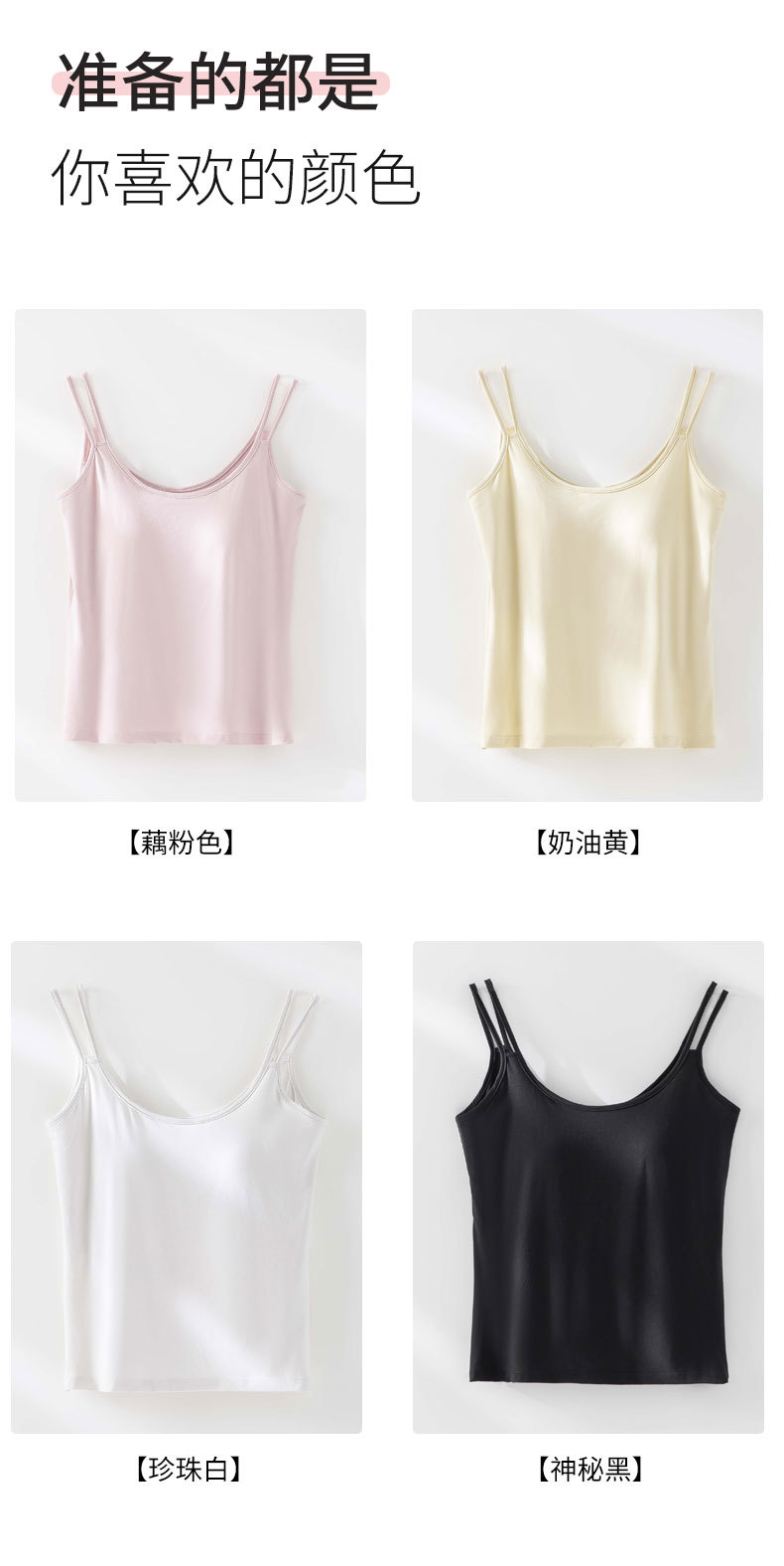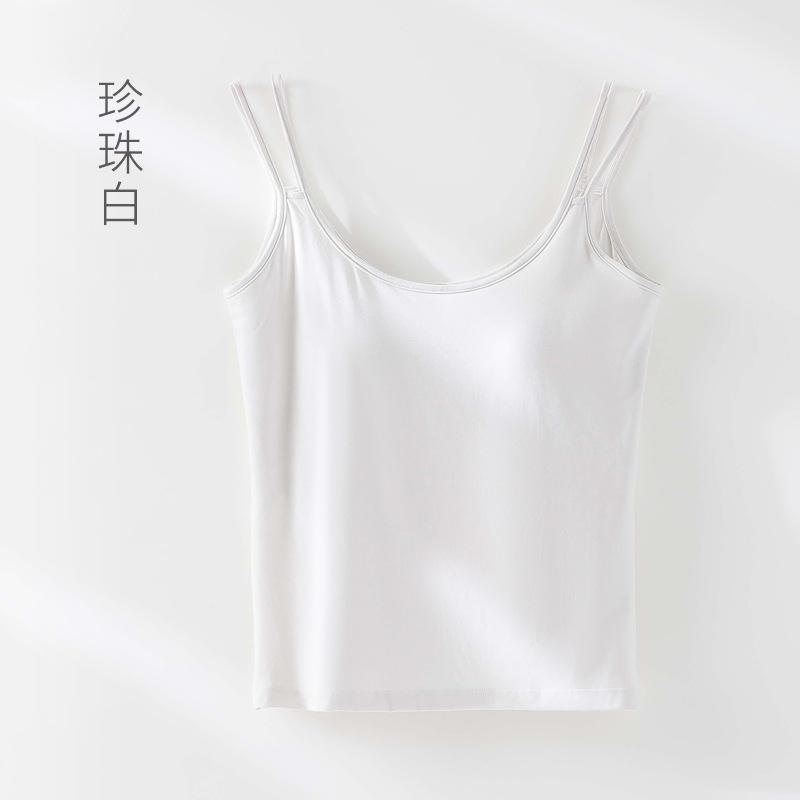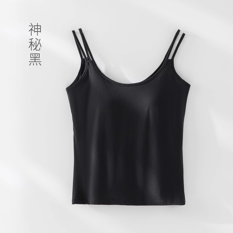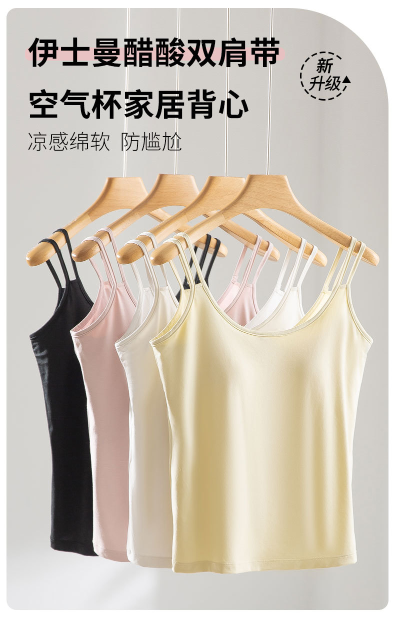 새로운 여름 스타일 에코 실크 아세테이트 컵 조끼 캐주얼 아우터 더블 숄더 스트랩 홈 뷰티 백 캐미솔 탑