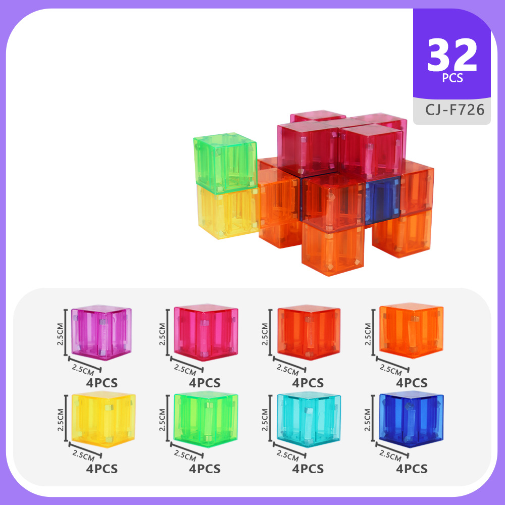 투명 자기 큐브 자기 입체 그래픽 기하학적 빌딩 블록 25mm 큐브 6면 자기 빌딩 블록스토어 가기