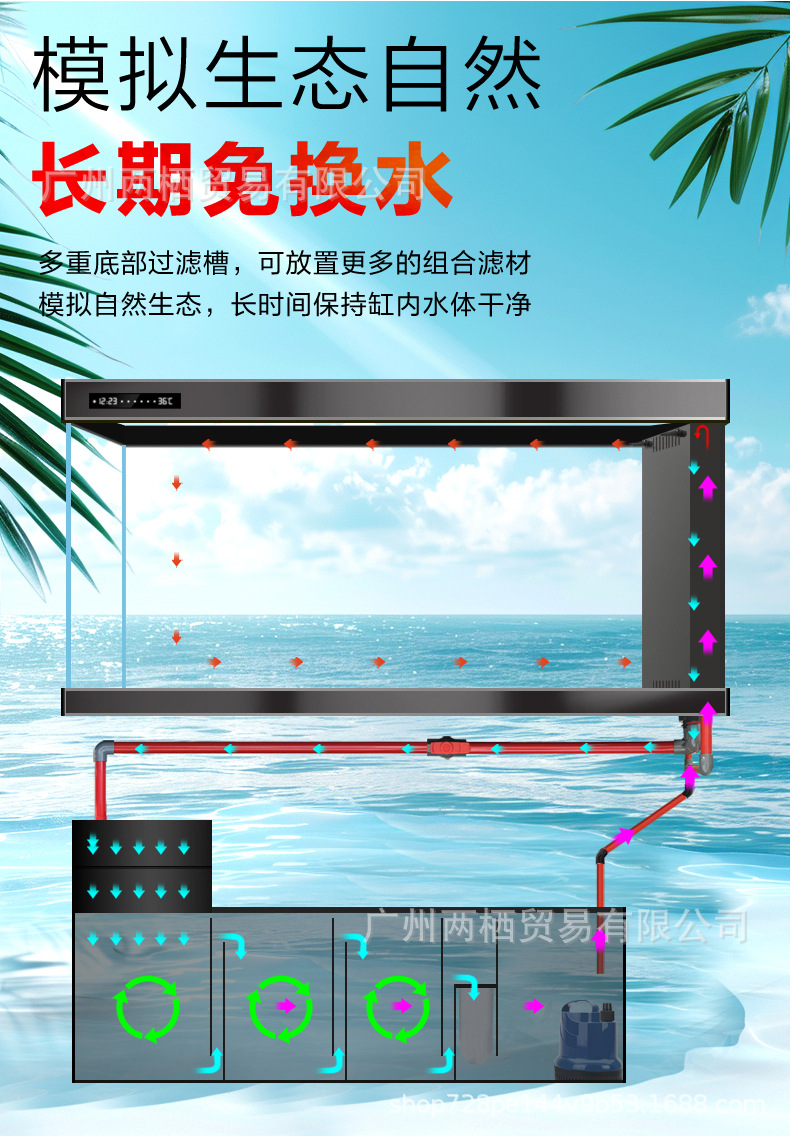 거실용 Jiro 수조, 가정용 중대형 측면 오버플로 바닥 여과 수족관, 남미 오리지널 생태 조경 아로와나 수조스토어 가기