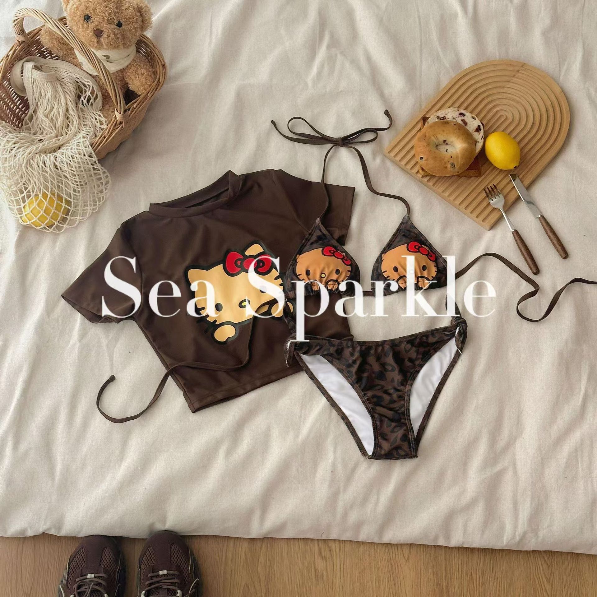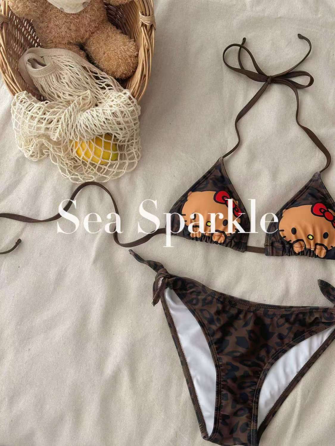 수영복 여성 레오파드 무늬 KT 고양이 쪼개기 섹시한 비키니 세트 핫걸 모아서 온천 비치 홀리데이 수영복스토어 가기