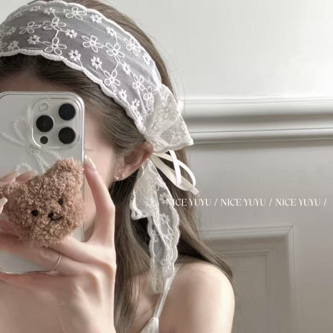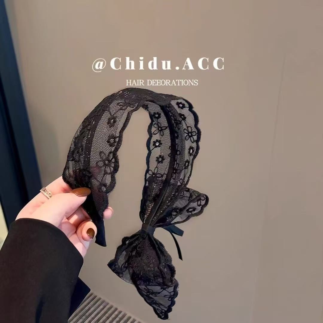 프랑스 스타일 메쉬 활 레이스 와이드 림 헤드 밴드 여성 목가적 인 스타일 여름 리본 헤드웨어 고급 헤어 액세서리