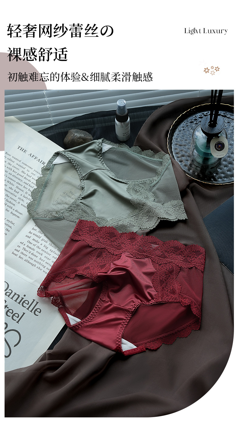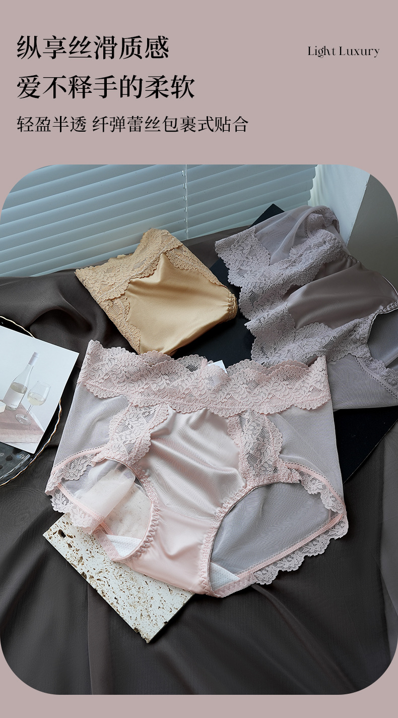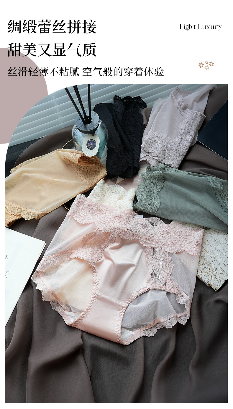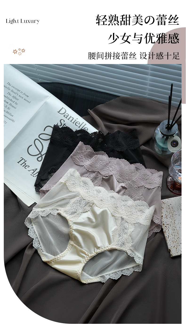 여성용 새틴 쿨 레이스 팬티, 아이스 실크 통기성 멀버리 실크 가랑이 메쉬 미드 하이 웨이스트 팬티, Douyin 핫 스타일스토어 가기