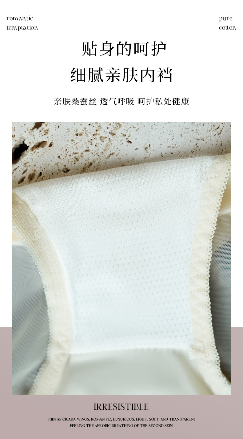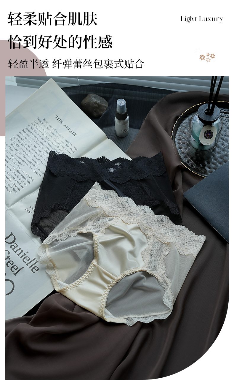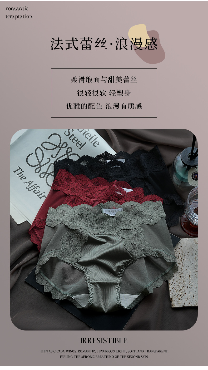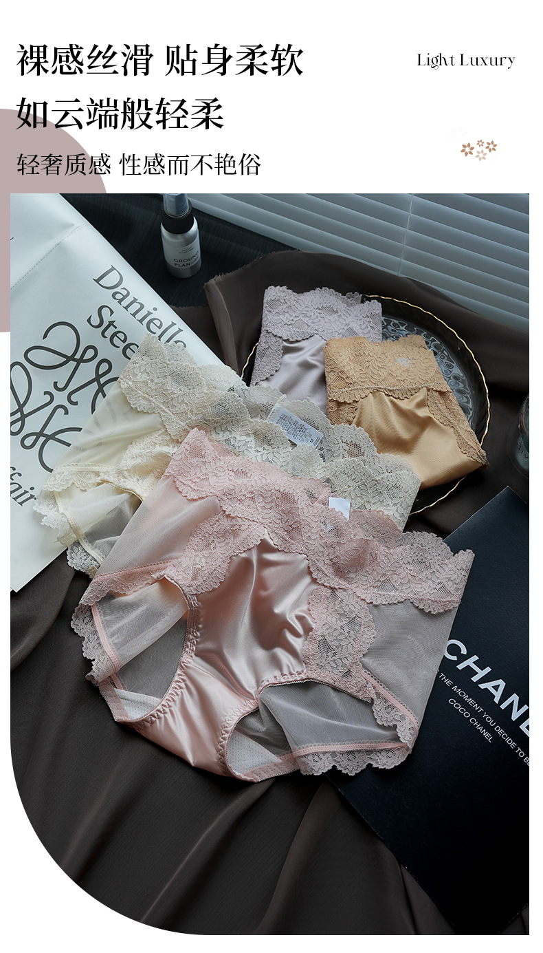 여성용 새틴 쿨 레이스 팬티, 아이스 실크 통기성 멀버리 실크 가랑이 메쉬 미드 하이 웨이스트 팬티, Douyin 핫 스타일스토어 가기
