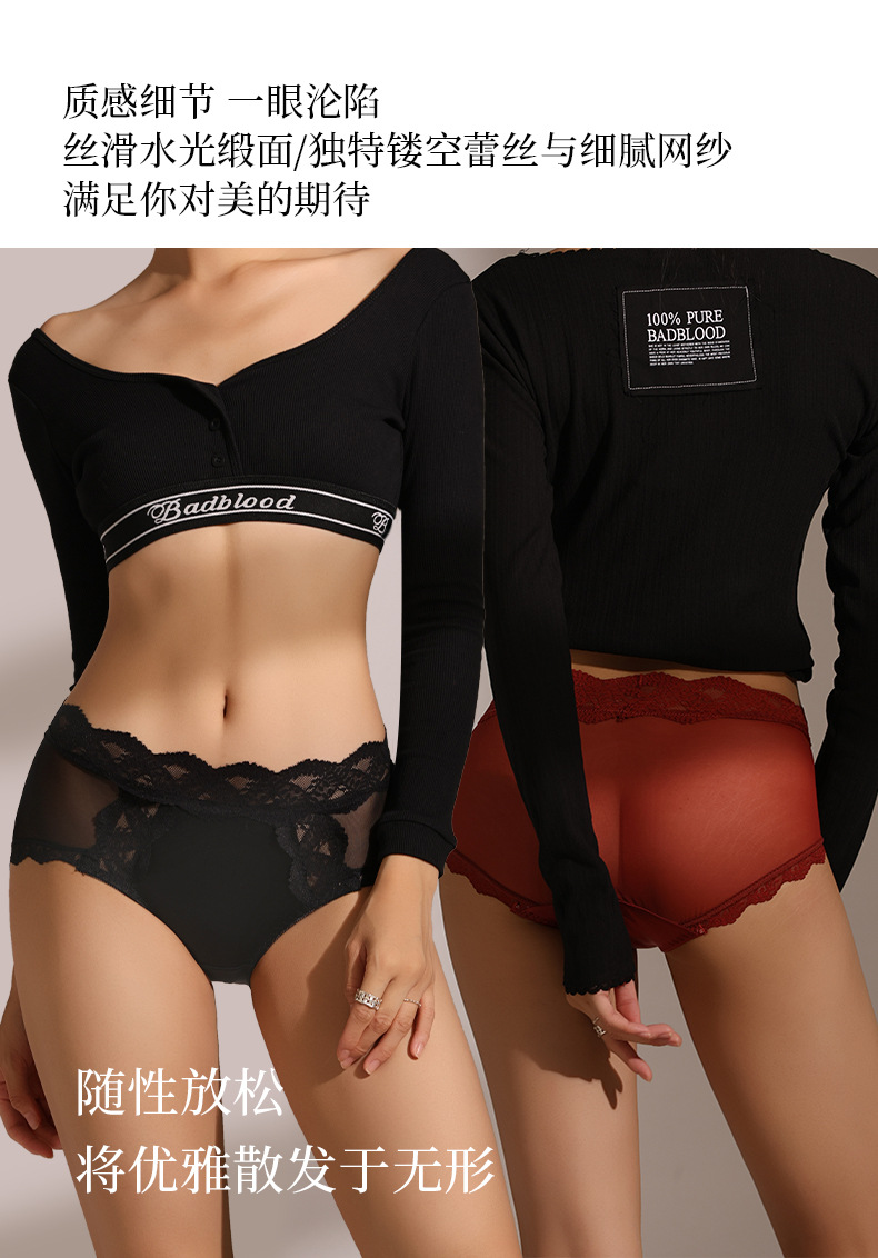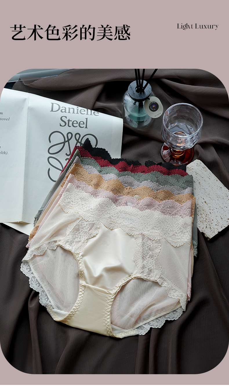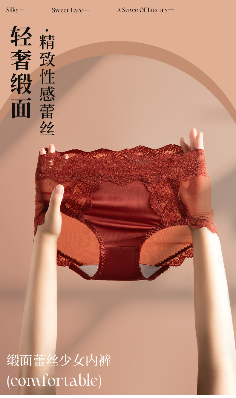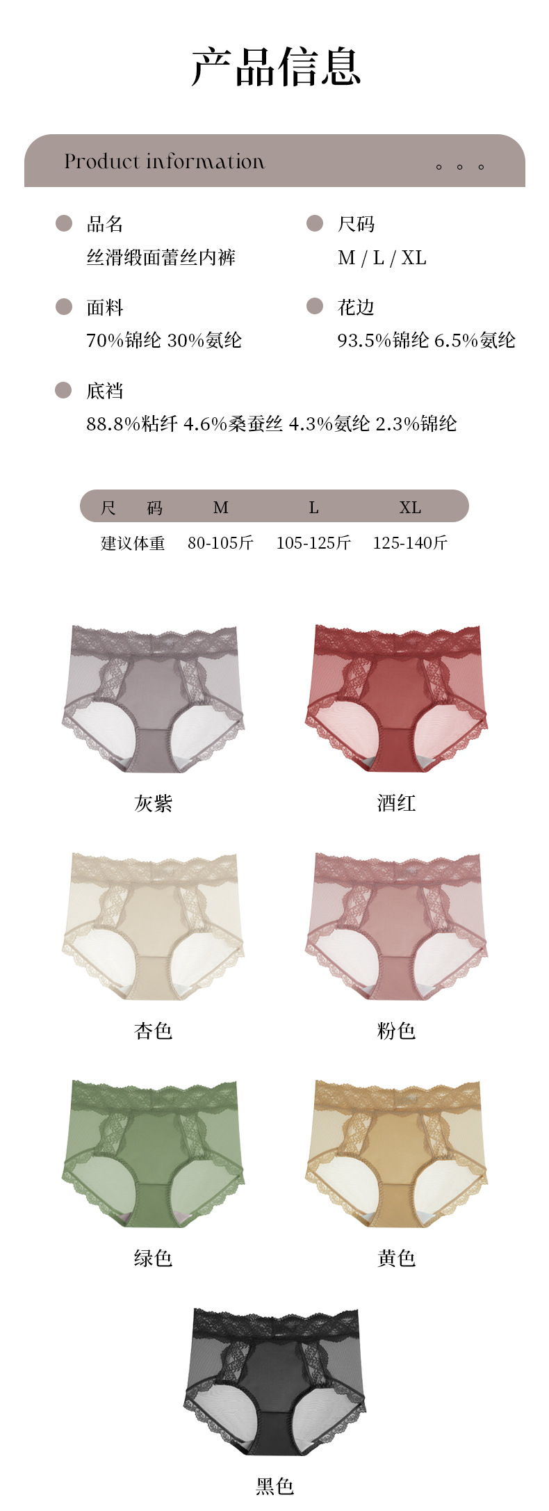 여성용 새틴 쿨 레이스 팬티, 아이스 실크 통기성 멀버리 실크 가랑이 메쉬 미드 하이 웨이스트 팬티, Douyin 핫 스타일스토어 가기