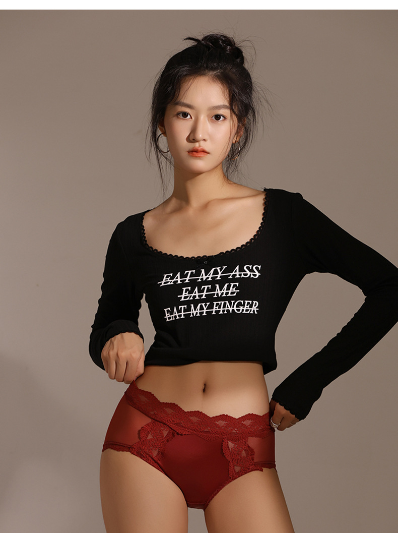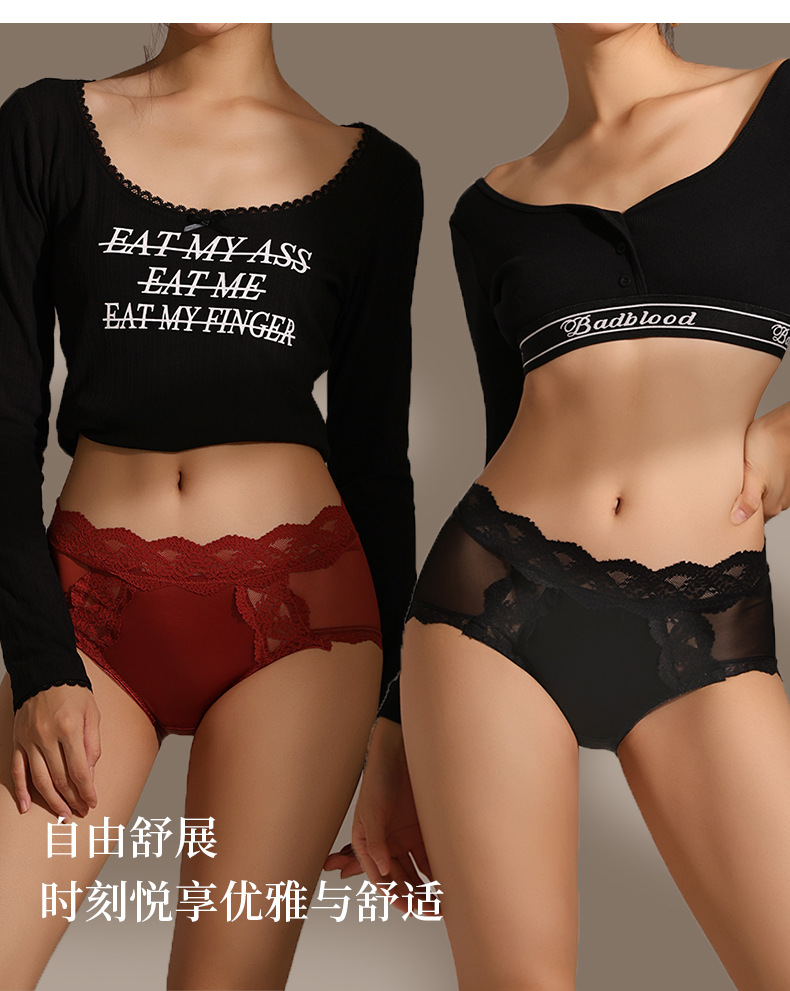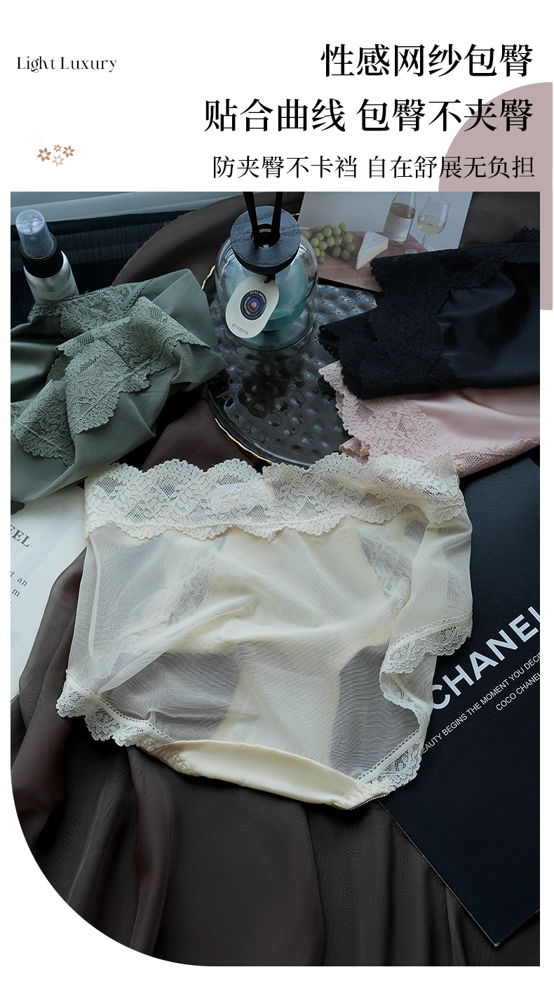 여성용 새틴 쿨 레이스 팬티, 아이스 실크 통기성 멀버리 실크 가랑이 메쉬 미드 하이 웨이스트 팬티, Douyin 핫 스타일