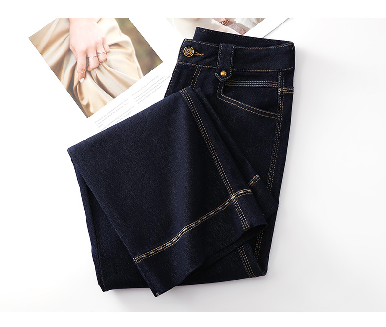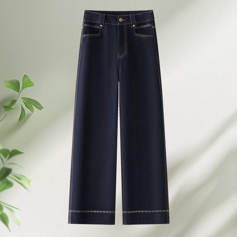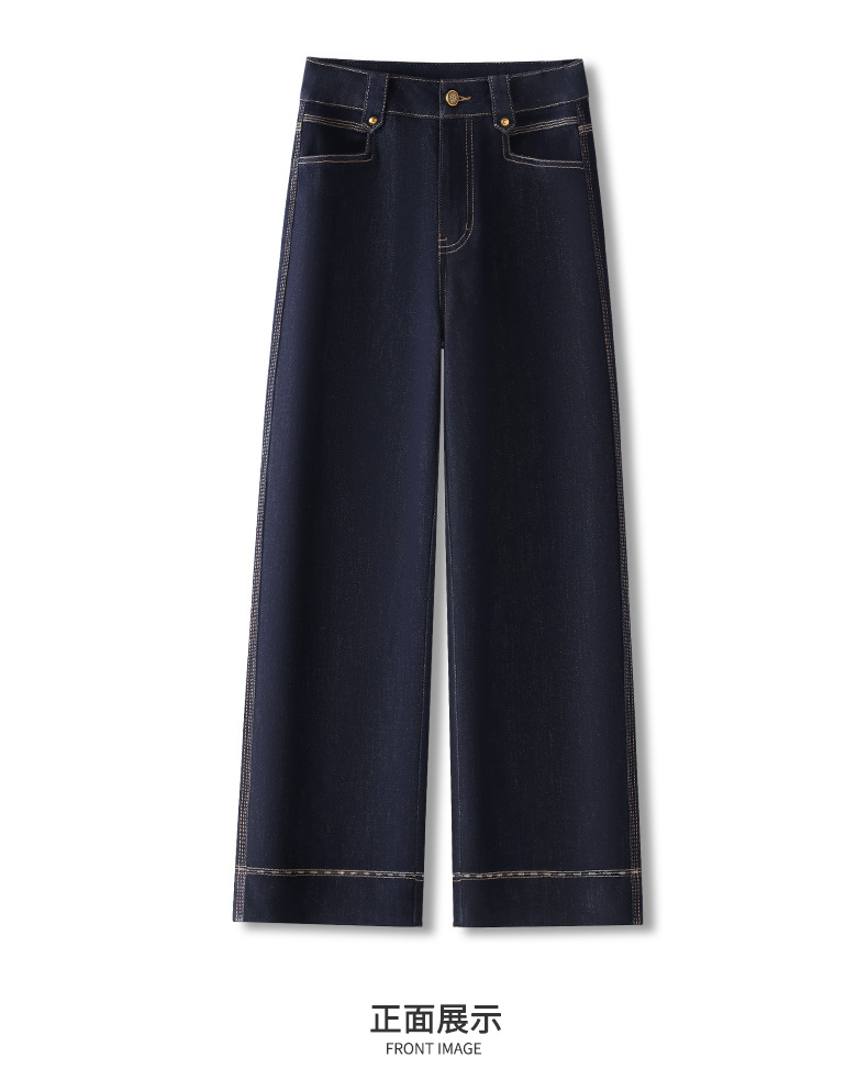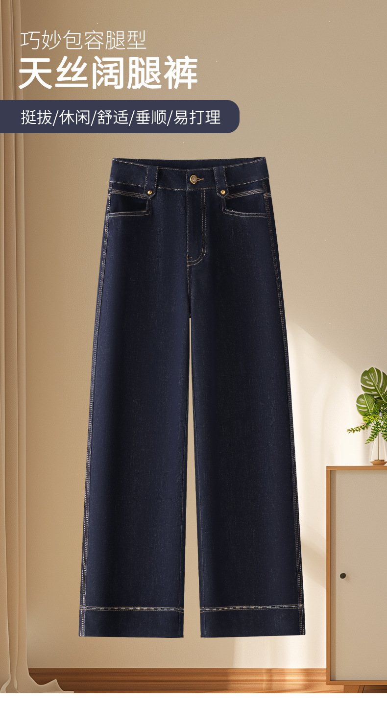 텐셀 데님 자른 넓은 다리 바지 여자 2025 년 여름 새로운 높은 허리 작은 느슨한 슬리밍 좁은 직선 바지스토어 가기